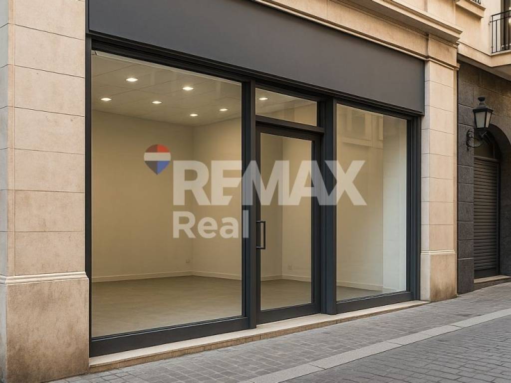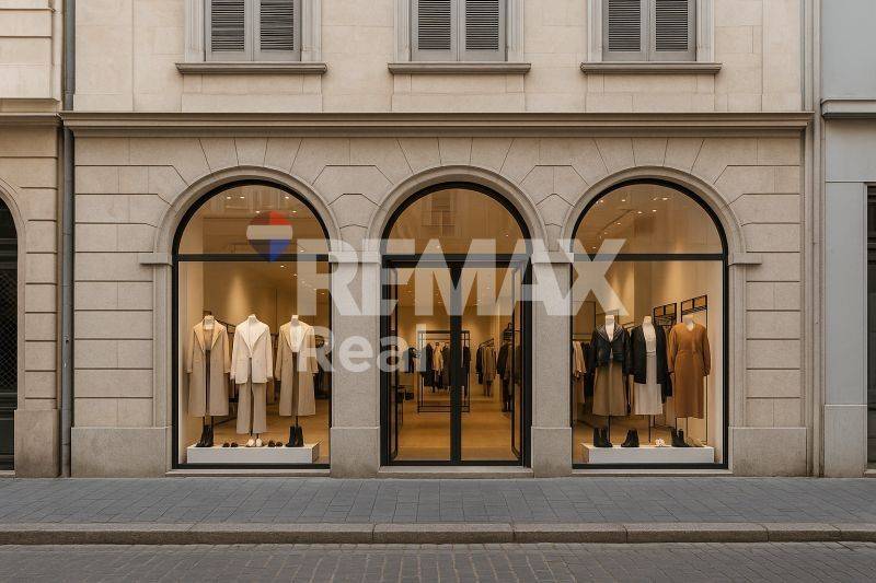 For rent: ground-floor commercial shop of 130 sq.m., located in a prime corner position on a pedestrian street, on the main commercial road of the city.