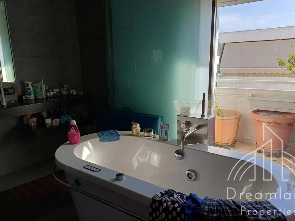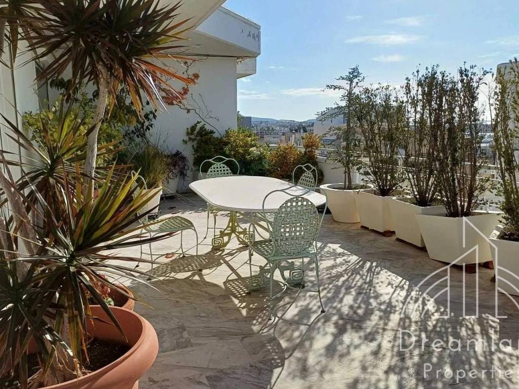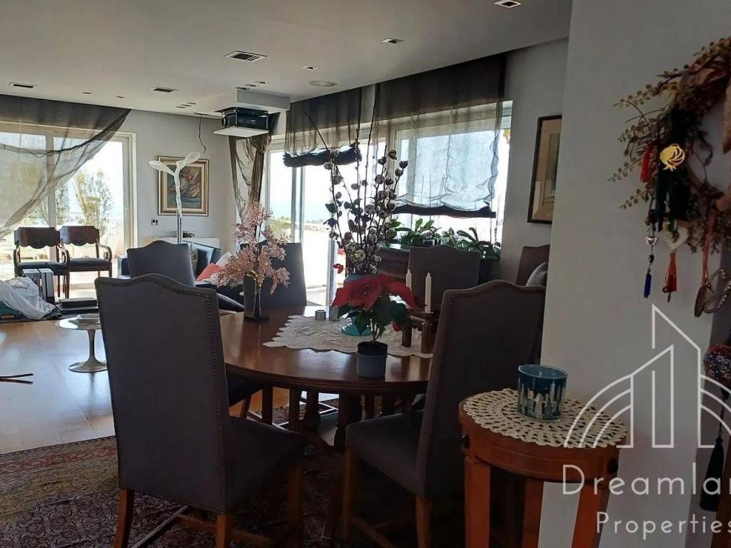 GLYFADA Golf, Luxurious Penthouse Apartment 250 sq.m., 6th Floor, 2 Bedrooms, Large Living Room - Dining Room, Separate Spacious Kitchen, 1 Bathroom, W.C., Autonomous Heating with Natural Gas, Fireplace, A/Cs. Solar Water Heater, Security Door, Aluminum Window Frames, Double Glazed Panes, 16 sq.m. Storage Unit, 1 Open Air Parking Spot, Large Verandas All Around the Apartment, Unlimited Sea View, Nice Location, Quiet Area, Bright, Price 6.000 Euros (Listing code: 3444). "