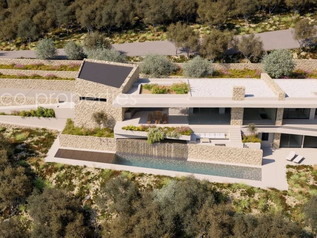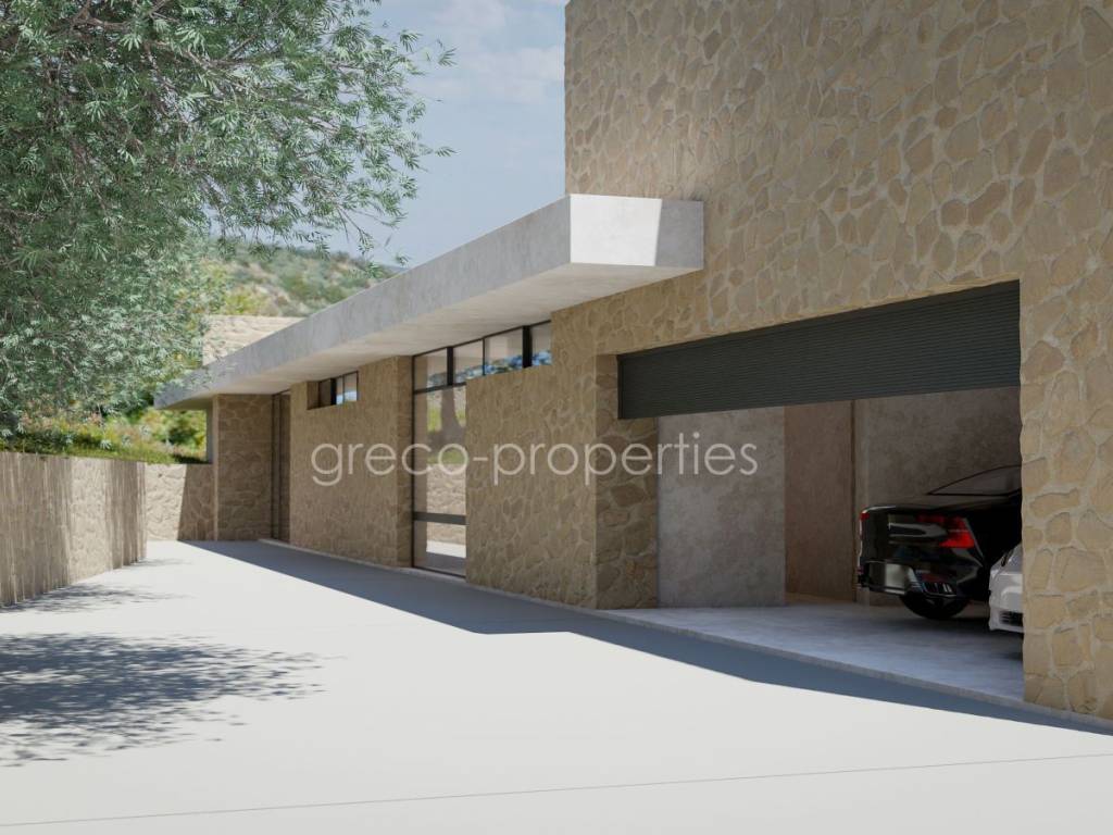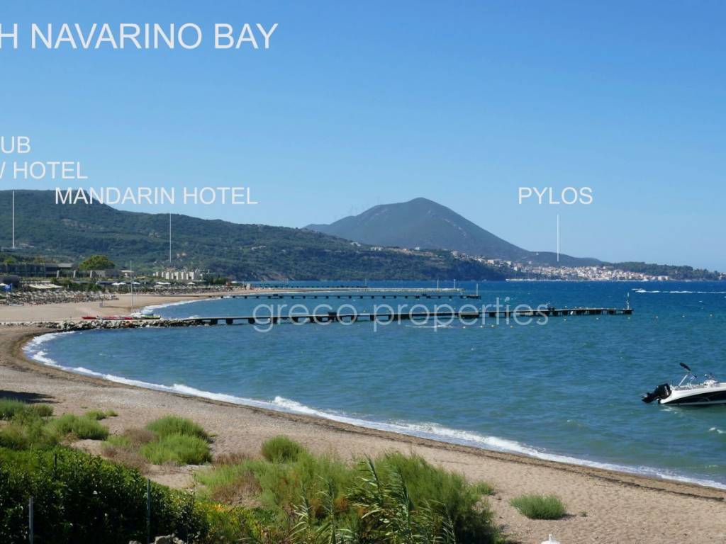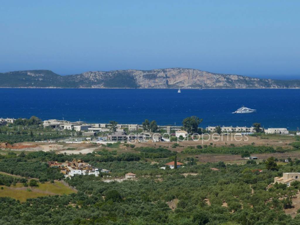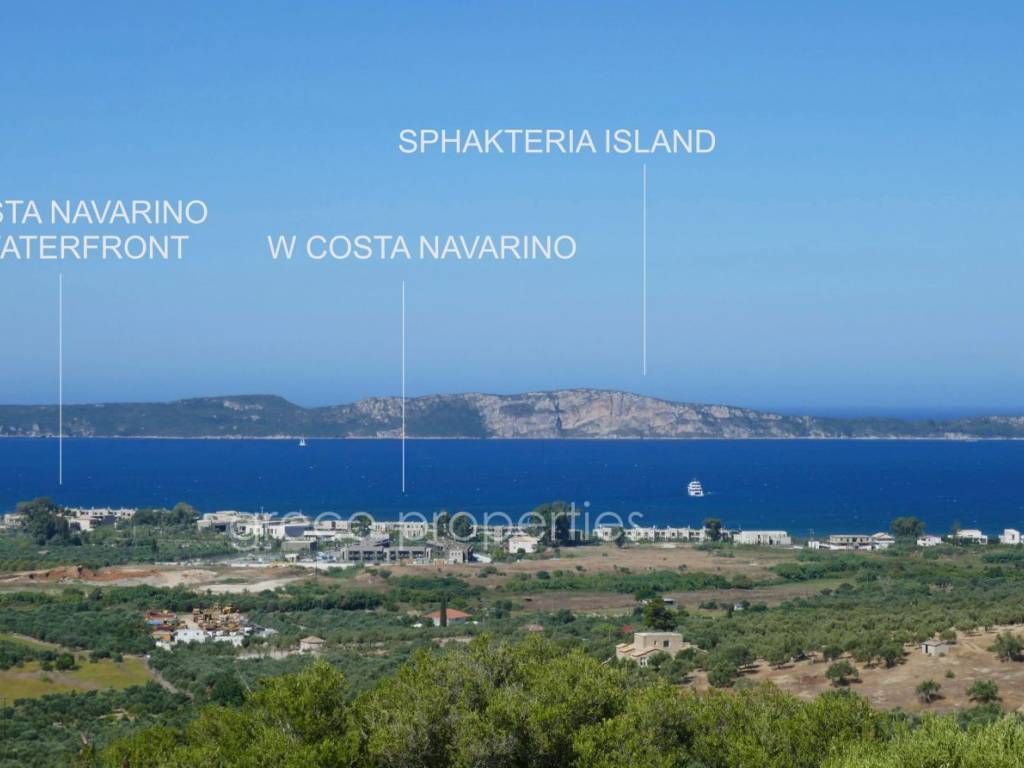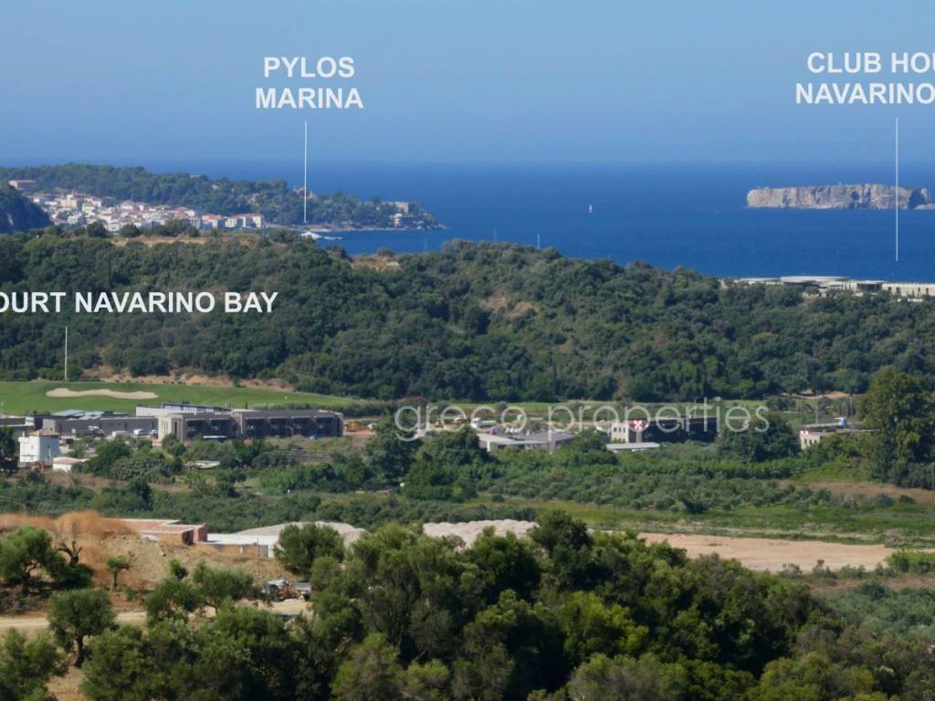 PREMIUM BUILDING PLOT FOR A DESIGNER VILLA AT NAVARINO BAY GOLF COURSE (Pylos) Unique plot (4,347 m²) in an exclusive setting with unobstructable sea views over Navarino Bay and its island landscape, including a registered building permit for a two‑storey designer villa (284 m²) with pool. Surrounded by luxury: Modern, high‑end villas characterize the area around Giálova, a coastal village with a picturesque promenade along Navarino Bay, close to the historic town of Pylos. Since the opening of the 18‑hole coastal golf course “Navarino Bay” in October 2011, Europe’s newest and highly awarded golf and wellness destination has emerged here. Visitors can expect a modern lifestyle that feels natural, young, fresh, and stylish—harmoniously embedded in Greek tradition and an archaic natural landscape. Local materials such as natural stone, wood, and Messinian reed define the traditional architectural style, also omnipresent in the five‑star resorts. The newly designed villa follows this aesthetic with stone cladding, floor‑to‑ceiling glass façades, and an infinity pool with waterfall. It was designed by a renowned international architectural firm and officially approved in May 2025 after a two‑year planning and development process in coordination with local authorities. Construction may begin at any time within the next four years. The exceptional designer villa is spread across two levels Upper Floor (163.04 m²): Spacious living–dining–kitchen area with additional wet kitchen Master bedroom with walk‑in wardrobe and en‑suite bathroom (double washbasin) Guest WC, storage room, double garage with access corridor Infinity pool, 19 m long and 3.35 m wide, with waterfall Sun terrace with lounge area Lower Floor (121.33 m²): Two studio rooms with en‑suite bathrooms Wine cellar, laundry room, storage room, technical room Water supply cisterns Directly at your doorstep – within a 2,000 m radius: The golf courses Navarino Bay and Navarino Hills with its International Golf Academy The luxurious shopping and dining district at the “Navarino Agorá” marina *) The 5***** luxury resorts Mandarin Oriental and W‑Hotel The lively, traditional coastal village of Gialova with its promenade, shops, and upscale Greek tavernas The authentically Greek village of Pyla with its coffee house and traditional tavernas Public sandy beach of Navarino Bay (1,500 m long) *) Navarino Agorá offers more than 20 shops around a small marina, including branded fashion, shoes, beachwear, accessories, optics, jewellery, books, beauty and health products, home goods, as well as beauty services, excursions, museum shop, summer cinema, and music events. Gastronomy is an integral part of the visitor experience, with a wide range of restaurants offering Mediterranean and fusion cuisine, Greek and international flavours, street food, ice cream, and premium wine tastings. Distances 37 km to Kalamata Airport (40 minutes) A new expressway is currently under construction. Location / Infrastructure Altitude: 85 m above sea level Distance to the sea (air line): 1,700 m Distances Gialova 2.3 km 0:04 h Pylos 6 km 0:10 h Methoni 17 km 0:20 h Koroni 46 km 0:50 h Gargaliani 20 km 0:20 h Kyparissia 47 km 0:45 h Kalamata 46 km 0:50 h Golf Courses – Wellness Resorts Navarino Bay – Agorá – Mandarin Oriental 2 km 0:03 h Navarino Hills 5 km 0:07 h Navarino Dunes – Westin – The Romanós 11 km 0:15 h Airports Kalamata Airport 37 km 0:40 h Patras–Araxos Airport 175 km 2:00 h Athens Airport 296 km 3:00 h Ferry Port Patras Ferry Port 207 km 2:30 h Notes All information is provided by the seller. No guarantee for completeness or accuracy by the agent. The general terms and conditions apply and can be viewed at any time. The brokerage fee is 3.72% including VAT and includes the organisation of the contract process. Statutory ancillary purchase costs for property transfer tax, notary, lawyer, and land registry currently amount to approx. 7.5%. Subject to prior sale. Minor deviations in the description may occur.