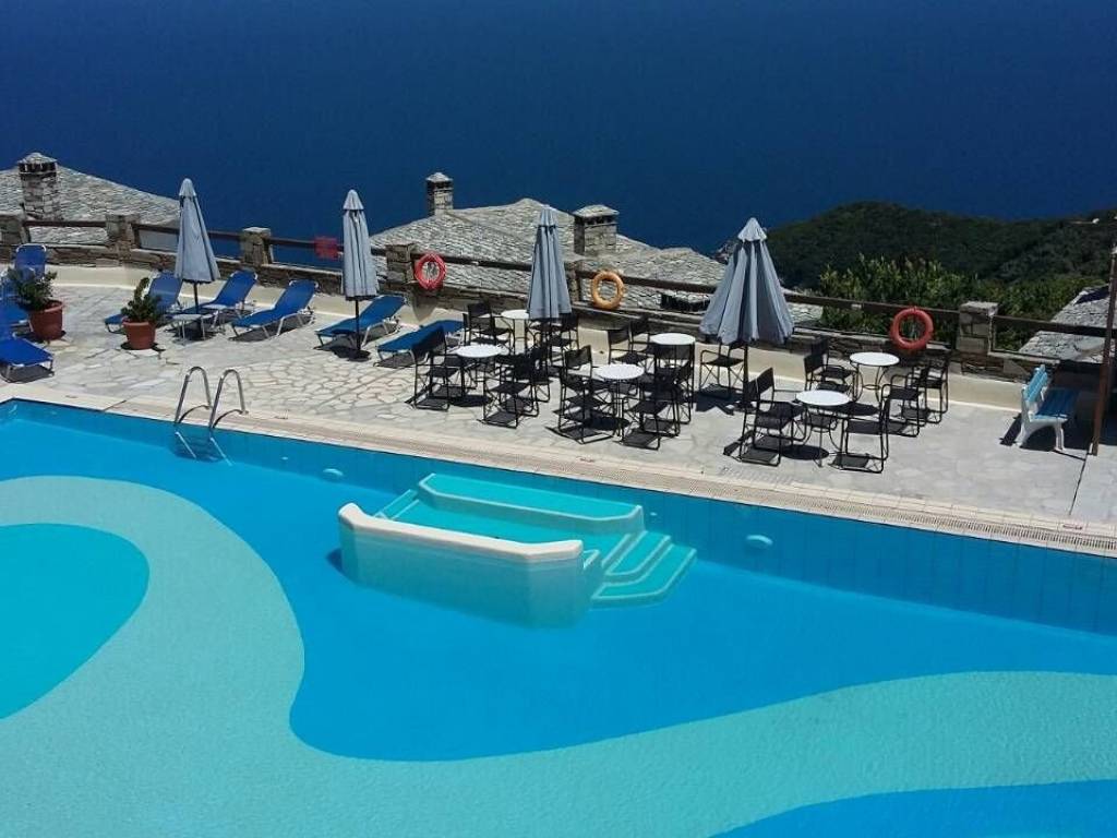 Hotel 4* , in a plot of 8.200s.m. , the total size of the buildings is 3800s.m., consists of 79rooms, built on the beautiful mountain of Pelion next to Tsagkarada village and the award winning beach of Milopotamos. The hotel is built according to the local architecture style consists of small buildings built on the slope of the mountain , offering amazing sea view from all its spaces. There is also a beautiful outside pool and pool area with a breath catching sea view, 2 restaurants, lounge room, and a congress hall fully organized. The hotel is in full operation with high rankings , all of the rooms include a fireplace . It is situated only 3,9 km from the award winning beach of Milopotamos, 24km from the Pilion Ski center, 88km from the National Airport of Nea Achialos and 388km from the International Airport of Athens Eleftherios Venizelos. It is a unique resort ideal for summer and winter vacation ideal for all year through operation