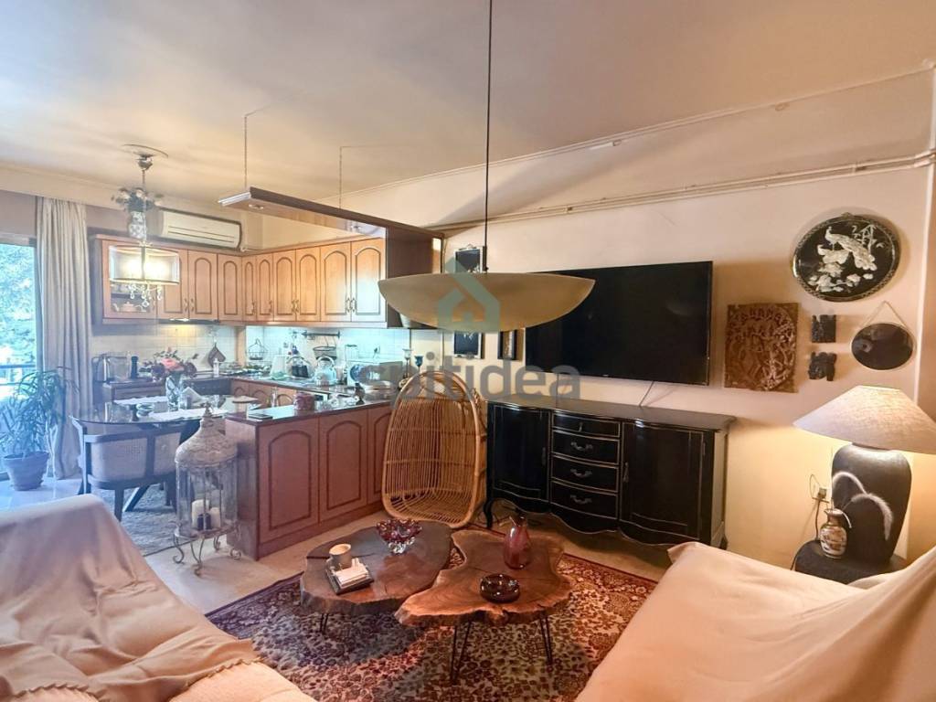 This is a 90sqm apartment on the 1st floor of an apartment building built in 1980 in the center of Vrilissia. It consists of a living room, open kitchen, 3 bedrooms, bathroom and wc. It has a very large veranda on the facade of almost 30sqm, individual natural gas heating, aluminum frames, marble floors and wooden floors in the bedrooms, renovated kitchen in 2004, air conditioning, 5sqm storage room and a parking space. It is located in an excellent location, next to a park close to sports facilities and 900m from the Doukissis Plakentias metro station.