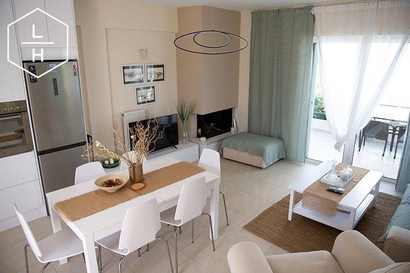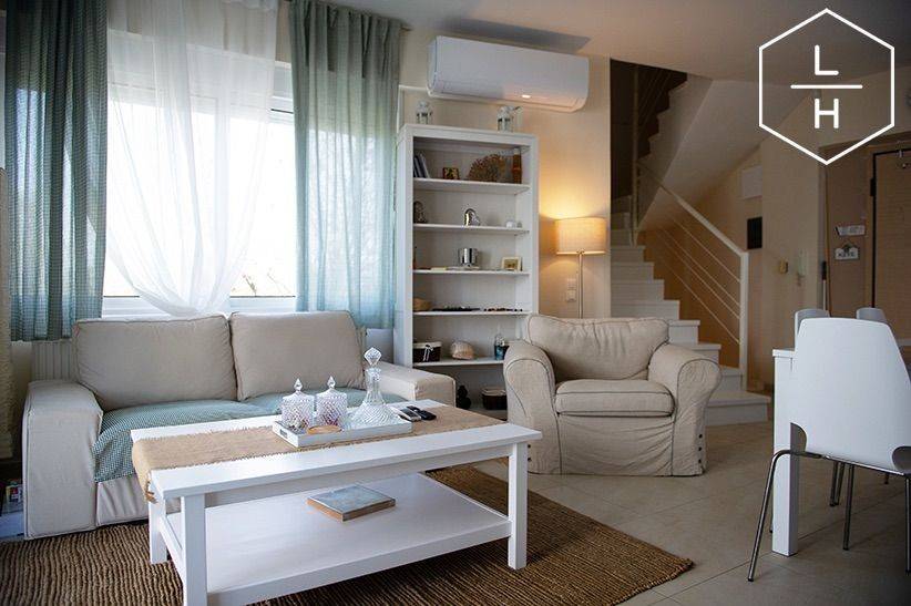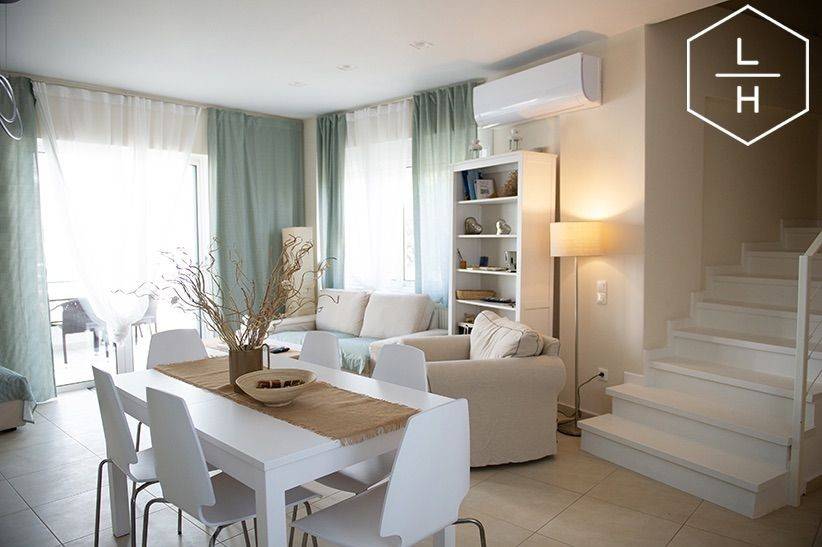 A beautiful three-level maisonette with a total area of 115 m², built in 2013, is available for rent in Kokoni, on a 190 m² plot. The property was partially renovated in 2022, featuring new laminated flooring and a new kitchen. Layout Elevated Ground Floor: Open-plan living room and kitchen with fireplace and verandas 1st Floor: 2 bedrooms, 1 bathroom, and a veranda Semi-Basement: 2 bedrooms and 1 bathroom Features & Amenities Autonomous oil heating system (with boiler), private burner and tank Fireplace 2 air-conditioning units (A/C) Aluminum window frames with double glazing and insect screens Security door and alarm system 24-hour security response service Water pump with pressure system 1 outdoor parking space The maisonette is fully furnished and fully equipped, including: Dishwasher Washing machine Dryer Espresso machine Coffee grinder Toaster, kettle, and other small appliances The home is very bright, modern, and comfortable, decorated in relaxing earth tones. It is located in a beautiful residential complex, just 300 meters from the beach, and features small private gardens at the front and back, perfect for relaxing moments. ✔ Ideal both for permanent residence and holiday home use.