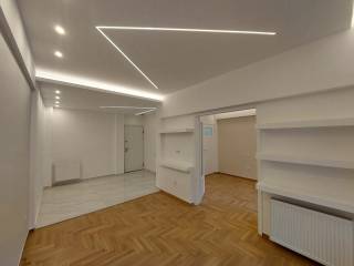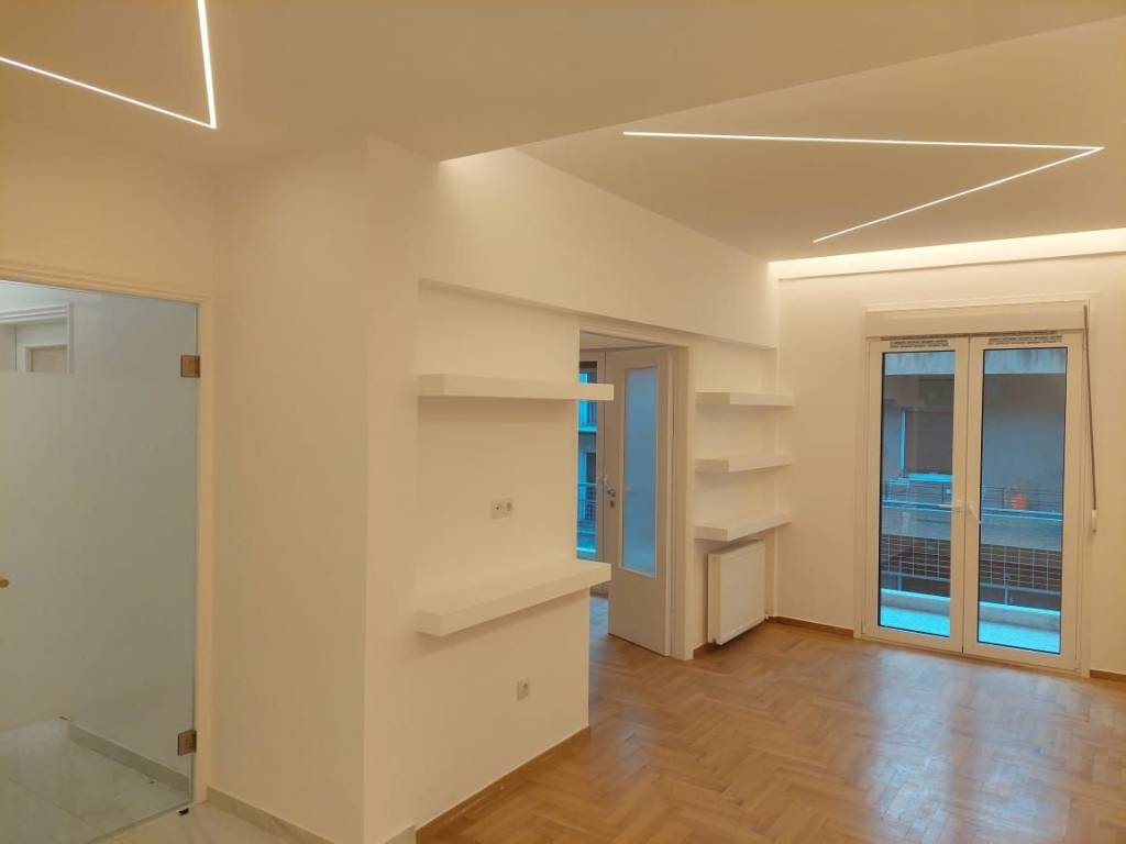Ippokratous Street, Exarhia, 3rd floor, front-facing apartment with view, 65sqm, with big living room and entrance area, 1 bedroom, dining room (or 2nd bedroom), 1 bathroom, separate space for laundry, fully renovated with new electrical and water systems, new soundproof windows with screens, solar water heater, air condition Mitsubishi A++ in every room (3), alarm system, security door, Franke kitchen appliances (stove, dishwasher), very close to the market areas and public transportation. Suitable as a house or for office use.