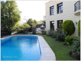 Vouliagmeni, Center, Detached house For Sale, 550 sq.m., Property Status: Amazing, Floor: Ground floor, 3 Level(s), 4 Bedrooms (1 Master), 2 Kitchen(s), 3 Bathroom(s), 1 WC, Heating: Autonomous, Building Year: 1999, Energy Certificate: Not required, 3 parking(s), Floor type: Wooden floors + Marble, Type of door frames: Aluminum, Features: Security door, Security alarm, CCTV, Storage room, Fireplace (2), Playroom, Internal Staircase, Double Glazed Windows, Window Screens, Balconies, BBQ, For Investment, Luxury, Roadside, Bright, AirConditioning, Solar water system, Boiler, Trees, Swimming pool, Back yard (Garden), Renovated, Price: 4.450.000€. Domus inc., email: gr@greekblue.gr