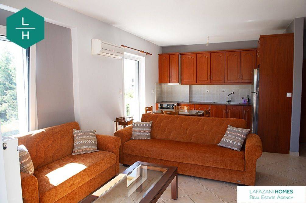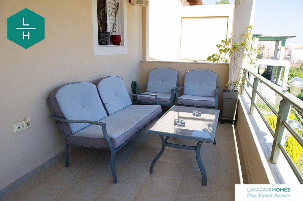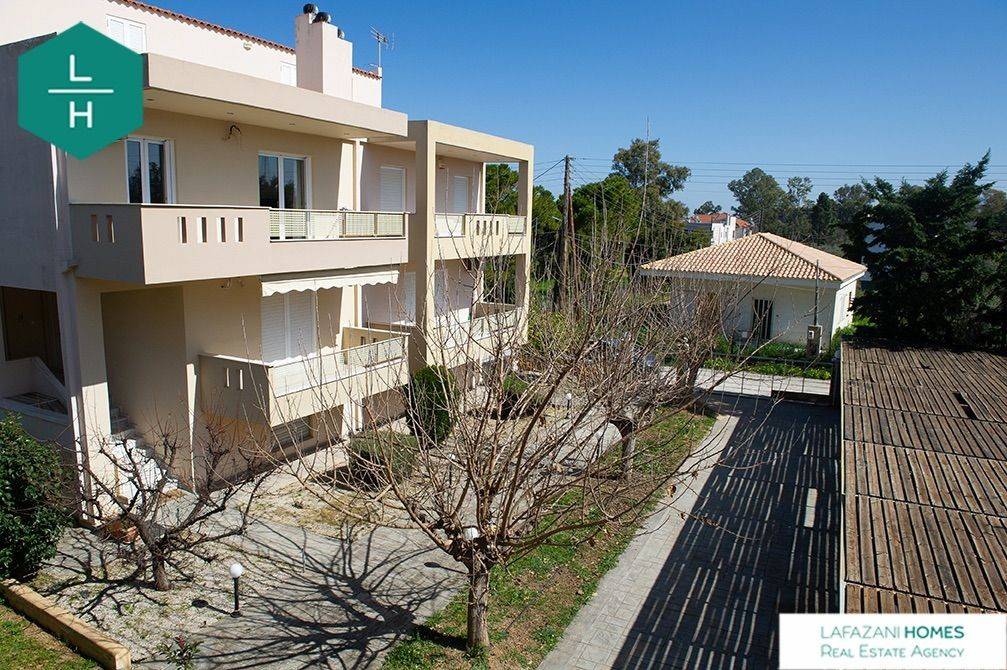 In Nerantza Korinthias, a beautiful seaside maisonette is available for rent on the 1st and 2nd floors, with a total surface of 75 sq.m., built in 2006. The property is located in a well-maintained, gated residential complex just 100 meters from the beach. The maisonette is developed over two levels. The first level features a bright open-plan living room with kitchen, one bedroom, one bathroom, and spacious balconies. On the second level there is an additional bedroom and one more bathroom, offering comfort and practicality. The property includes autonomous oil heating, two air-conditioning units, aluminum window frames with double glazing and insect screens, an alarm system, electric awnings, a water tank with pressure pump, and one covered parking space. Thanks to its east–south orientation, the residence enjoys plenty of natural light throughout the day, creating a bright and pleasant living environment. The property can be rented fully furnished and fully equipped, with the option to be delivered unfurnished depending on the tenant’s needs. It is available for long-term rental and is ideal both as a permanent residence and as a holiday home close to the sea. For long-term leases, the real estate agency fee is half a month’s rent plus VAT.