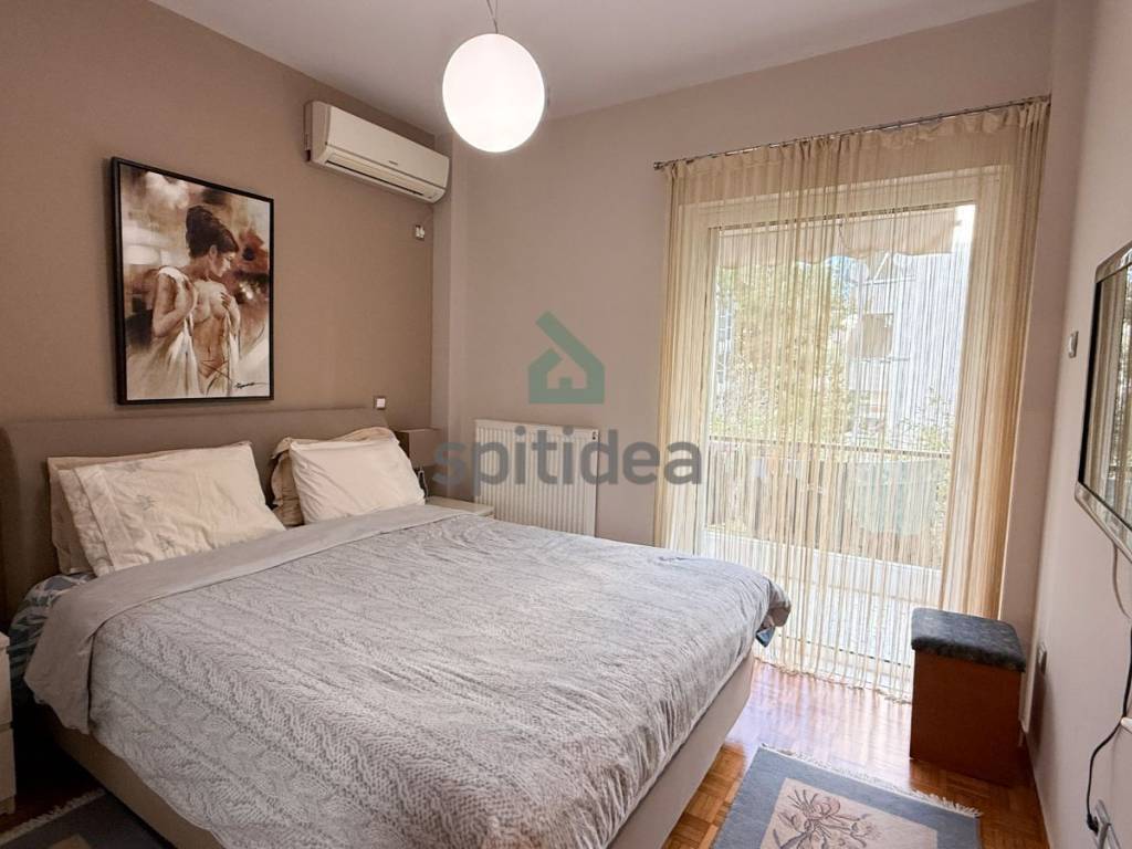 This is a bright and pleasant 90sqm apartment on the 1st floor of a well-maintained building built in 1980. It consists of a spacious living room, separate kitchen, 2 bedrooms and a bathroom. It was fully renovated in 2018 and features individual heating with natural gas, air conditioning, fully renovated plumbing and electrical, renovated bathroom and kitchen, new wardrobes and all interior frames, renovated wooden floors in almost all areas, aluminum frames with double glazing and screens, many extra wardrobes, security door, alarm, verandas around the entire property and thermal facade around the entire apartment. It is located in a nice neighborhood 900m from the two metro stations Holargos and Ethniki Amyna.
