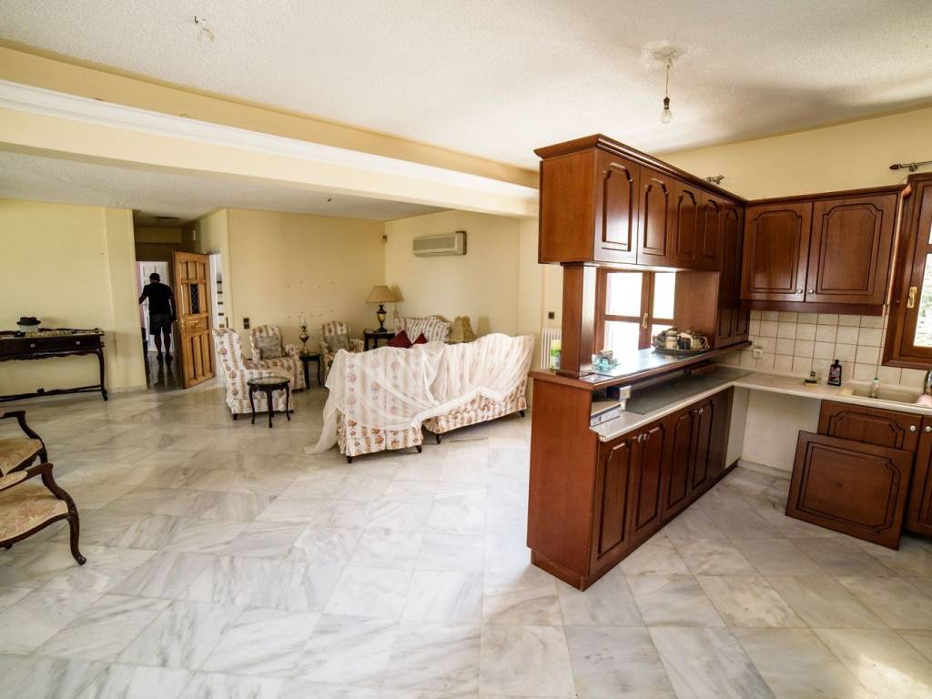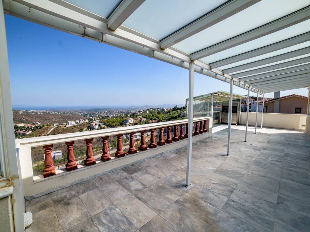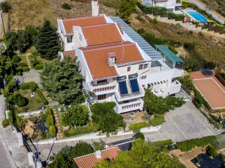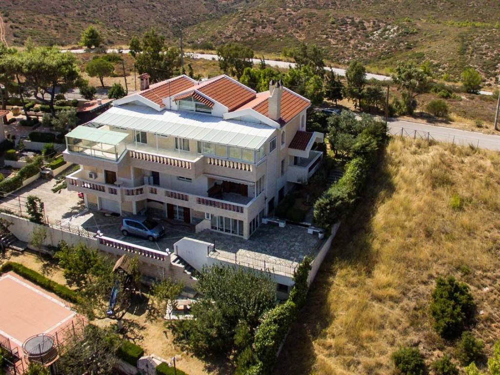 ΚΑΤΟΙΚΙΕΣ στο ΝΤΡΑΦΙ (Βόρεια Προάστια- Δήμος Πικερμίου) ΚΥΡΙΟ ΚΤΗΡΙΟ 498,30 τ.μ. (3 κατοικίες): Υ.Δ.: 7 ΜΠΑΝΙΑ: 8 ΑΝΕΞΑΡΤΗΤΗ ΚΑΤΟΙΚΙΑ 58,74 τ.μ.: Υ.Δ.: 2 ΜΠΑΝΙΟ: 1 Εξαιρετικής αρχιτεκτονικής κτήριο, τριών επιπέδων 498,30 τ.μ. και επιπλέον σοφίτα 40,95τ.μ., με άριστη ποιότητα κατασκευής, σε πανοραμικό οικόπεδο 1361 τ.μ., με ανεμπόδιστη θέα, από το Αιγαίο Πέλαγος ως το Αεροδρόμιο Ελευθέριος Βενιζέλος, Αθήνα και Πειραιά. Εντός του οικοπέδου το οποίο διαθέτει έναν πανέμορφο κήπο με δέντρα, χώρους πάρκινγκ, διαμορφωμένα πατάρια, μεγάλη πισίνα, μικρό εκκλησάκι 8,00 τ.μ., υπάρχει και μία ανεξάρτητη κατοικία 58,74 τ.μ. Χτίστηκε το 1990 και ανακαινίστηκε το 2010 από τους ιδιοκτήτες του, με αγάπη, υψηλή αισθητική και πολυτέλεια.. Το κύριο κτήριο διαθέτει 3 αυτοτελείς, λειτουργικές κατοικίες, μία σε κάθε όροφο, αλλά μπορεί να χρησιμοποιηθεί και ως μία ενιαία κατοικία. Διαθέτει επίσης πανοραμικές βεράντες και εξώστες, στέγαστρα, εντοιχισμένες ντουλάπες, δάπεδα από μάρμαρο, ξύλο ή πλακάκια, πολλά παράθυρα και μπαλκονόπορτες, πόρτες ασφαλείας,3 τζάκια και κεντρική αυτόνομη θέρμανση, ηλιακούς θερμοσίφωνες και κλιματισμό. Στο πρώτο κατώτερο επίπεδο (ημιυπόγειο) υπάρχουν: 1) Κοινόχρηστο κλειστό γκαράζ, λεβητοστάσιο και σκάλα ανόδου 2) 2 αποθήκες 3) Κατοικία 105,81 τ.μ., με είσοδο εκτός από το κλιμακοστάσιο και από την πίσω πλευρά του κτηρίου, μέσω στεγασμένου χώρου, περιτριγυρισμένου με παράθυρα και μεγάλη πόρτα εισόδου, με χρήση κλειστής βεράντας και χώρο ανάπτυξης κάκτων και άλλων φυτών, δίνοντας στην κατοικία μια αμεσότητα στην πρόσβασή της σε κήπο και πισίνα. Η κατοικία αυτή διαθέτει ενιαίο χώρο κουζίνα-τραπεζαρία-σαλόνι με τζάκι, 2 υπνοδωμάτια με εσωτερικά μπάνια(master rooms) και 1 επιπλέον ανεξάρτητο μπάνιο. Στο δεύτερο (μεσαίο) επίπεδο του κτηρίου υπάρχουν: 1) Κοινόχρηστος χώρος με την κύρια είσοδο του κτηρίου προς την πλευρά του δρόμου και οι σκάλες ανόδου και καθόδου 2) Κατοικία 181,59 τ.μ., η οποία μας υποδέχεται με ενιαίους, φωτεινούς φιλόξενους χώρους, όπως σαλόνι με τζάκι, τραπεζαρία που αναπτύσσεται σε ένα επίπεδο πιο πάνω, μέσω ενός σκαλοπατιού, με δάπεδα ντυμένα με λευκά μάρμαρα, εντοιχισμένα ξύλινα έπιπλα και βιτρίνες, και 1 ξύλινο διαχωριστικό έπιπλο επικοινωνεί με πολύ μεγάλη ανακαινισμένη κουζίνα, ενώ 2 μπαλκονόπορτες οδηγούν σε πανοραμικές βεράντες. Η κατοικία διαθέτει ακόμη 1 υπνοδωμάτιο με εσωτερικό μπάνιο (master room), 2 υπνοδωμάτια που εξυπηρετούνται από ένα ακόμα μπάνιο, καθώς και ένα τρίτο πολυτελές μπάνιο για τον ενιαίο χώρο σαλονοτραπεζαρίας. Υπάρχει ανεξάρτητος χώρος για πλυντήριο (Laundry room). Το τρίτο (Α όροφος) επίπεδο του κτηρίου διαθέτει μία κατοικία 110,63 τ.μ., με σοφίτα 40,95 τ.μ. και στέγαστρο-Η.Χ. 58,57 τ.μ. Η κατοικία αυτή αποτελείται από ενιαίους λειτουργικούς χώρους κουζίνα-σαλόνι με τζάκι, υπέροχη τραπεζαρία με θέα, 2 ευρύχωρα υπνοδωμάτια με ντουλάπες και ξύλινα πατώματα, μπαλκονόπορτες και παράθυρα, 1 μεγάλο μπάνιο, καθώς και 1 ακόμη μπάνιο στην υπέροχη σοφίτα, η οποία μπορεί να αξιοποιηθεί ως 1 επιπλέον υπνοδωμάτιο, ξενώνας, ή χώρος γραφείου. Υπάρχει και ανεξάρτητος χώρος για πλυντήριο (Laundry room). Η κατοικία προεκτείνεται πάνω στο δώμα με την υπέροχη θέα, δημιουργώντας στεγασμένους χώρους με ντουλάπες, κλειστές βεράντες, χώρους δραστηριοτήτων, και πέραν αυτών εκτείνεται πέργολα με ηλιοροφή. Επίσης το υπέροχο αυτό δώμα διαθέτει και στεγασμένο χώρο BRG. Ο εξωτερικός περιβάλλον χώρος