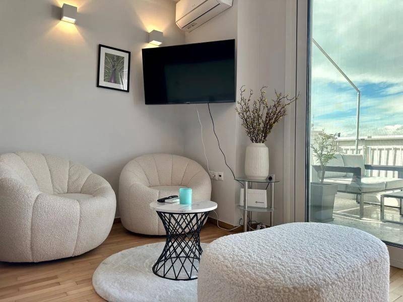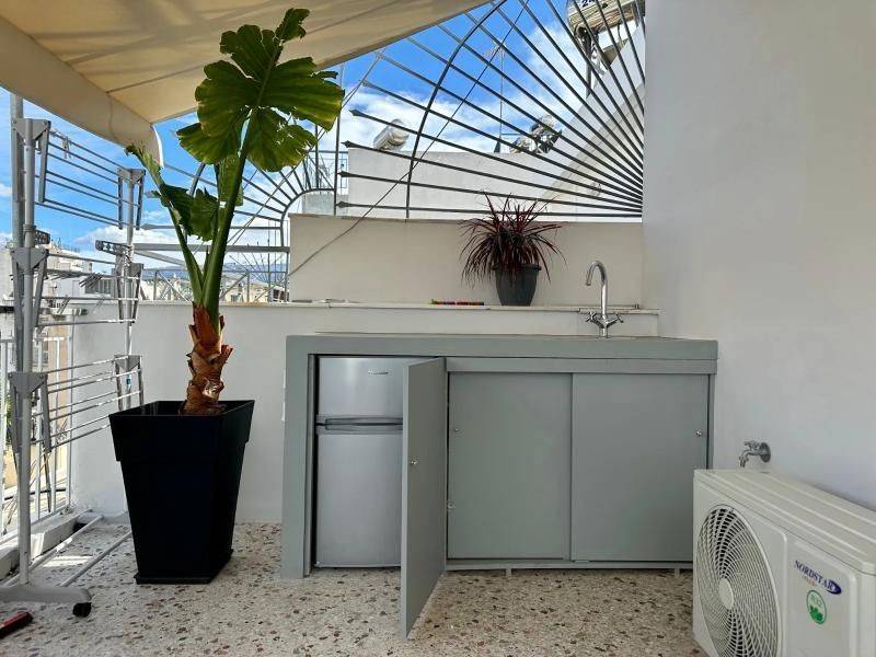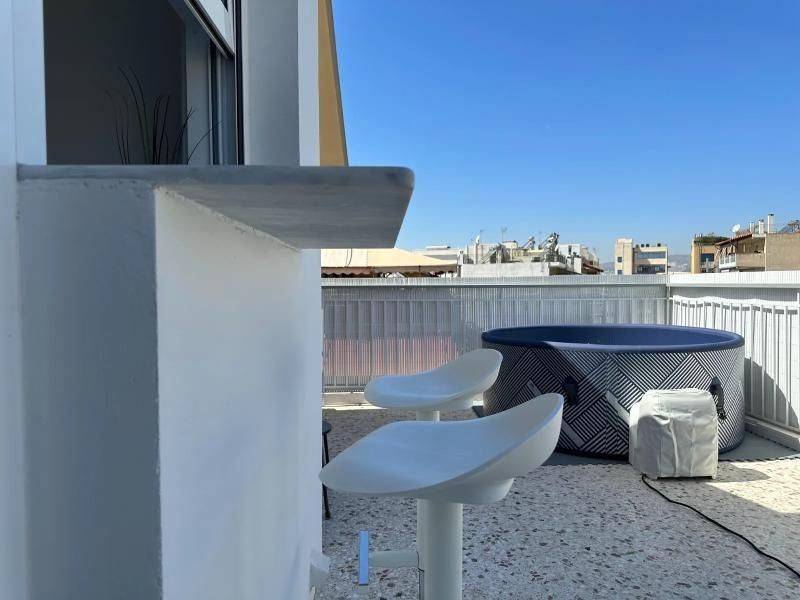 κομψό και λειτουργικό έξυπνο διαμέρισμα 43 m², που προσφέρει δύο πλήρως εξοπλισμένα υπνοδωμάτια. Διαθέτει μια εντυπωσιακή ιδιωτική ταράτσα 120 m² με σχεδόν πανοραμική θέα 360°, jacuzzi, και θέα Ακρόπολη και φύρω βουνα. Το διαμέρισμα είναι εξοπλισμένο με δύο μικρά ψυγεία, πλήρως διαμορφωμένο μπάνιο, εσωτερική κουζίνα, εξωτερική κουζίνα και άνετους χώρους φαγητού, ιδανικούς τόσο για χαλάρωση όσο και για φιλοξενία. Διαθέτει άδεια βραχυχρόνιας μίσθωσης και μπορεί να χρησιμοποιηθεί νόμιμα ως Airbnb αποτελεί ένα υψηλής απόδοσης επενδυτικό ακίνητο, με εξαιρετικά ποσοστά κρατήσεων