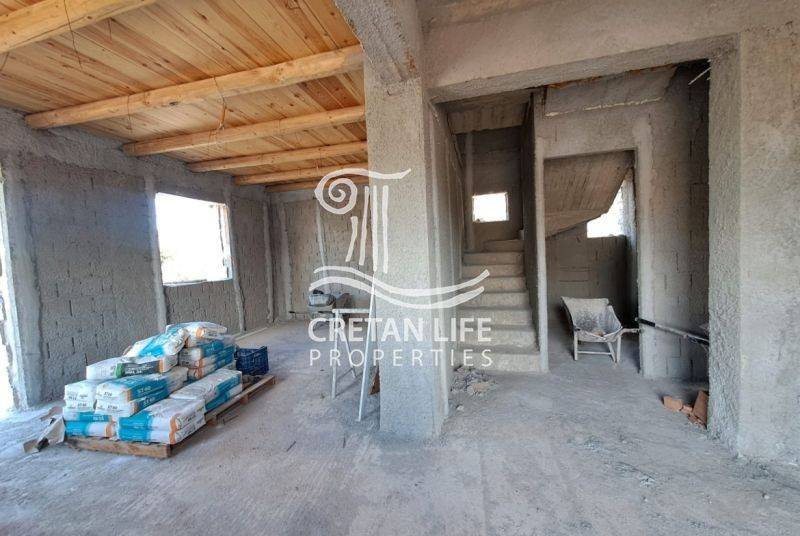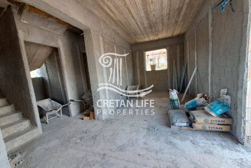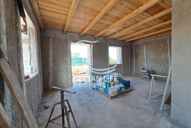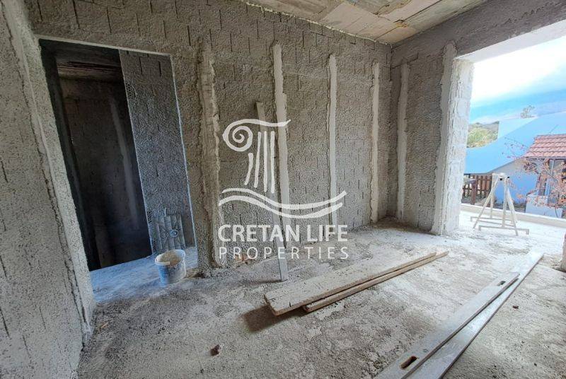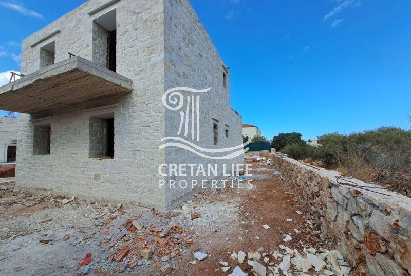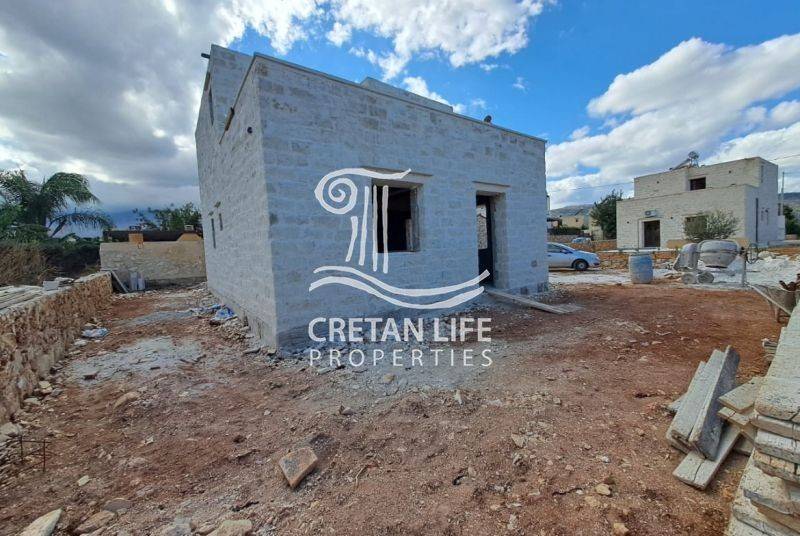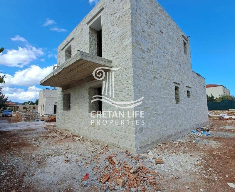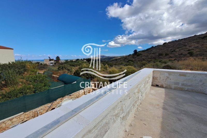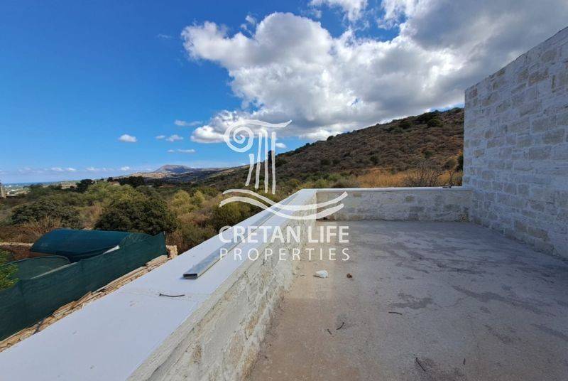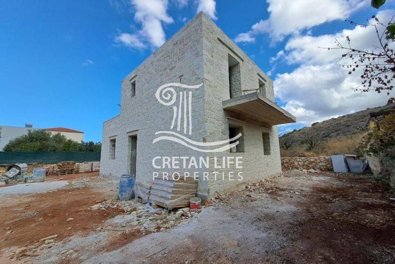 Newly built, detached stone villa with a total area of 106.51 sq.m. is offered for sale on a 458.40 sq.m. plot in Neo Chorio, Apokoronas. The property is situated on a small hill above the village, providing privacy, tranquility, and unobstructed views of the sea, mountains, and surrounding Cretan countryside.