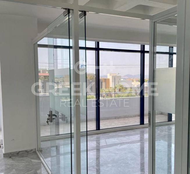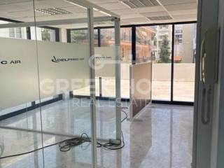 Elliniko, Kato Sourmena - Business Space 155sqm levels 1, 2nd (155sqm), newly built, year built 1996, energy class C, 2 wc, heating type: autonomous (electricity), air condition, parking open space, dual aspect apartment, park view, frontage, painted, structured wiring, equipped, storage space, elevator, wheelchair platform lift, marble floors, handicap ramp, three phase electricity, secure door, alarm, fire protection fire hose cabinet, fire detection, ventilation.