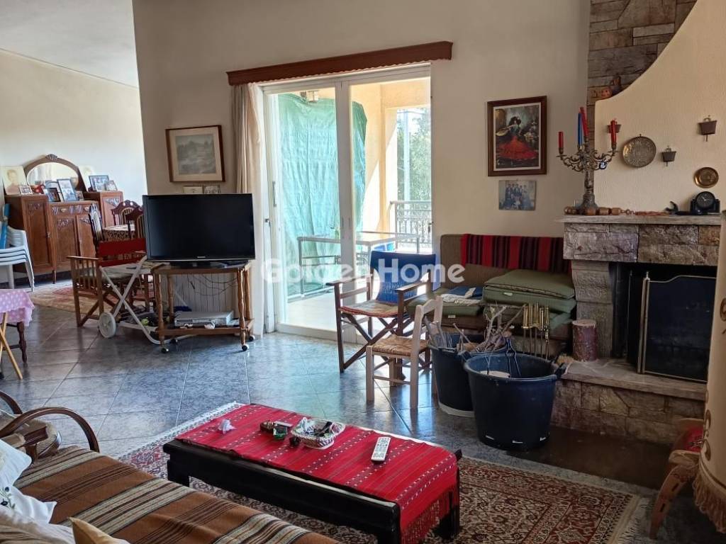 Detached house of 220 sq.m., built in 1991, situated on a plot of 800 sq.m., with unobstructed views and the possibility of an additional 115 sq.m. of construction. The property is arranged over two independent levels with separate entrances. • Elevated ground floor – 120 sq.m.: Comprises an open-plan living and dining area with fireplace, kitchen, two spacious bedrooms with built-in wardrobes, bathroom, and guest WC. Additionally, there is a utility/laundry room and mezzanine, while large surrounding terraces offer panoramic, unobstructed views. • Ground floor – 100 sq.m.: An open, unfinished space with WC, currently used as storage and parking. Installations for a kitchen and bathroom are already in place, allowing for the creation of an independent apartment or its integration with the elevated level. The property presents significant investment potential, suitable both for private residence and for development purposes. It offers the opportunity to create a second independent apartment, as well as additional construction (115 sq.m.) on the plot. For Sale, detached, Full Bathrooms: 1, Half Bathrooms: 1, Living Area: 220 Sqm, Rooms: 2, Year Built: 1991, Holiday Home, Air Conditioning, View, Balcony, Fireplace, Garden, Internal Stairs, Solar Water Heating, Storage Space, Garage, Floor Number: Semi Ground Floor, Corner, Facade, Pets Allowed, Renovated, Pest Net, Airy, Bright, Kitchens: 1, Joinery: Aluminium, Floor Type: Wood, Lot Size: 800 Sqm, Levels: 2, Heating Controller: Autonomous, Heating Medium: Petrol, Road Type: Asphalt, Zoning: Residential, Neoclassic, Energy Class: C, Orientation: Ne, Current: Single Phase, Balcony Area: 40