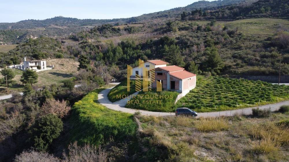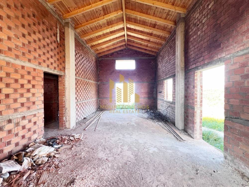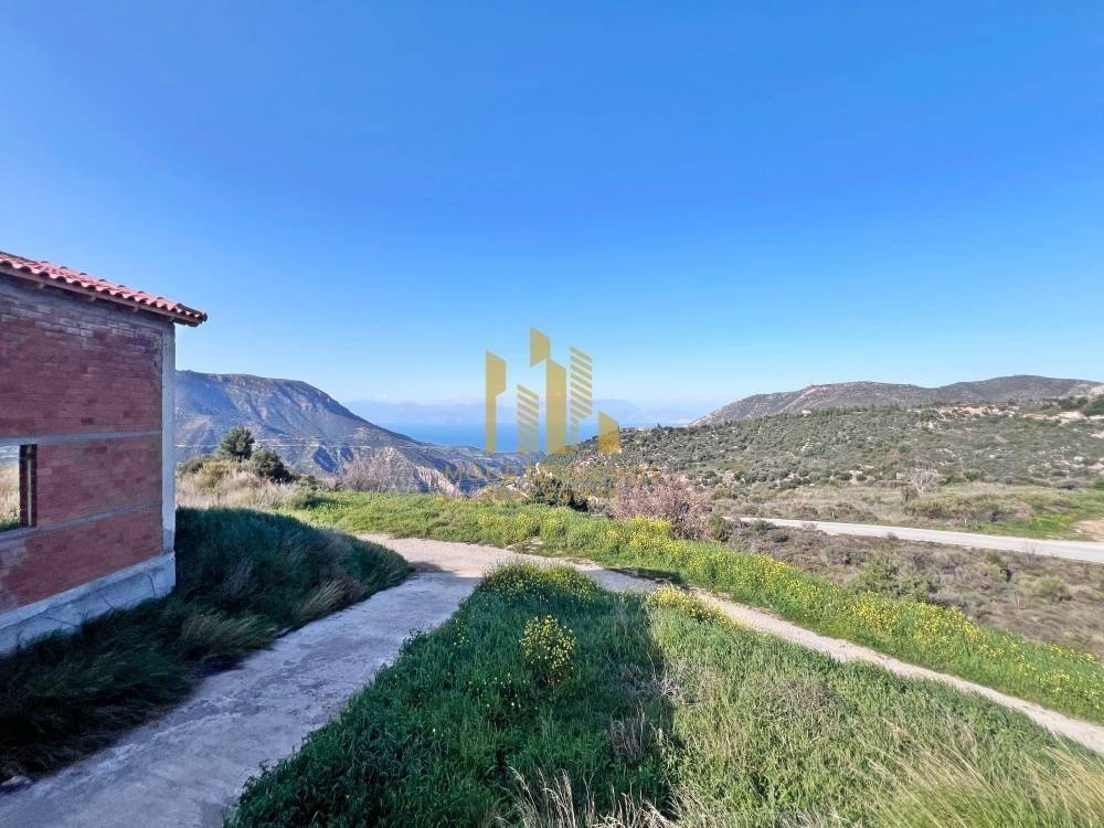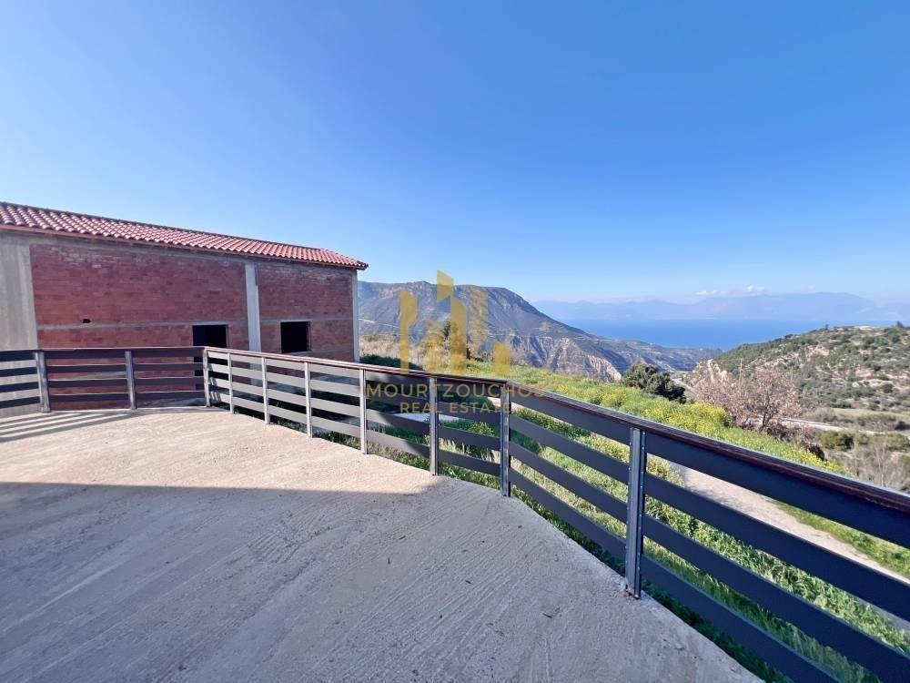 Built in 2009, the property features aluminum window frames with double glazing, insect screens, fireplaces, four outdoor parking spaces and energy class G, while no heating system is currently installed. The outdoor area provides ample space for a garden and relaxation areas with uninterrupted views of the Corinthian Gulf.
