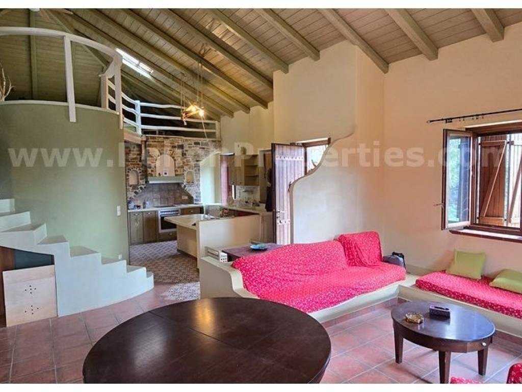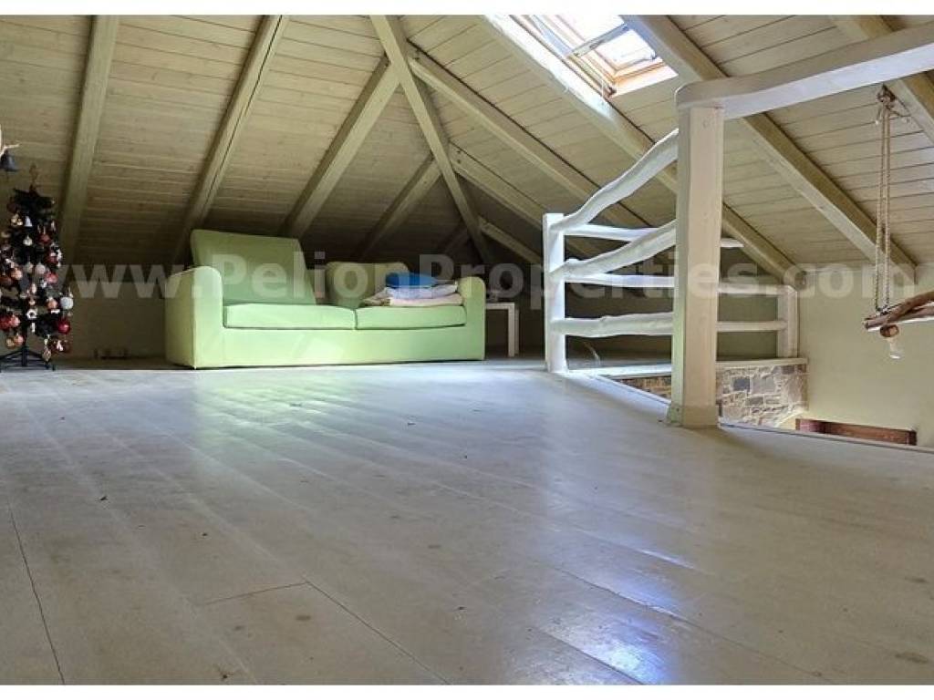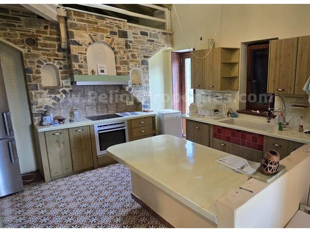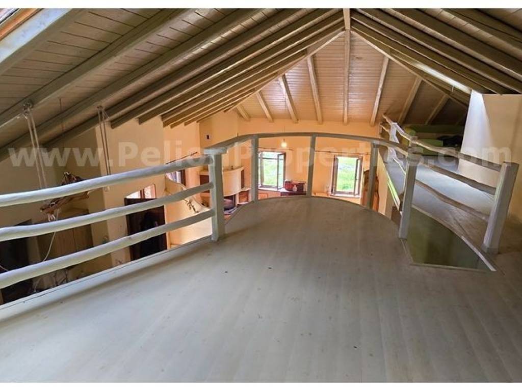 At the foothills of Pelion, Kato Lechonia blends the calm of a traditional village with easy access to the sea and the city of Volos. Surrounded by greenery and just minutes from the Pagasetic Gulf, the area offers a lifestyle where mountain charm meets coastal ease—without trying too hard. Within this setting, this unique single-level residence of 150 sq.m. unfolds on a generous 3,000 sq.m. plot, featuring an impressive internal loft of 64 sq.m. The home offers three comfortable bedrooms, one of which includes a walk-in closet, along with a bathroom, WC, pantry, and boiler room. Wood is the undeniable star here—dominating both interior and exterior—with standout elements such as a circular wooden staircase, a welcoming entrance gate, and a beautifully crafted loft. Built-in features like sofas, kitchen benches, and bathrooms follow distinctive, artistic lines, while decorative tiles throughout the house bring subtle references to Gaudí-inspired design. The bathrooms, in particular, stand out for their unique aesthetic. Heating is provided via underfloor system powered by the fireplace, with additional provisions for solar panels or a heat pump—because even character-filled homes can be energy-conscious. The property is sold furnished and equipped, ready to welcome its next owner without missing a beat. Nearby, you’ll find easy access to the beaches of the Pagasetic Gulf, while the scenic villages of Pelion and the vibrant city of Volos are just a short drive away. Ground-floor house of 150 sq.m. with 64 sq.m. loft on a 3,000 sq.m. plot in Kato Lechonia, featuring 3 bedrooms, unique architectural details, underfloor heating, and sold furnished.