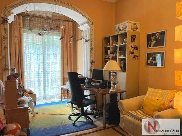 Ανεξάρτητο ισόγειο διπλοκατοικίας με δική του είσοδο, εποχής και αίγλης του '60, με ύψος ταβανιού 3,55 μ και γύψινο διάκοσμο, 185 τμ εντός οικοπέδου 595 τμ. Χώρος υποδοχής με τζάκι, τραπεζαρία, κουζίνα με άμεση πρόσβαση στον κήπο, 4 υπνοδωμάτια, μπάνιο, WC, αυτόνομη θέρμανση. Μεγάλος αποθηκευτικός χώρος. Προνομιακή τοποθεσία με απευθείας πρόσβαση σε κεντρικές αρτηρίες και παιδικές χαρές. Χρήζει ανακαίνισης.