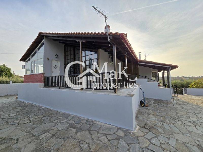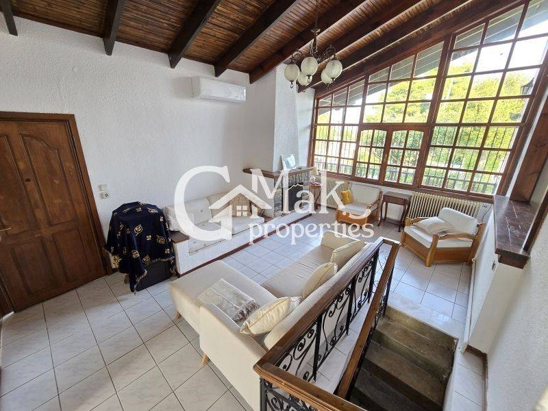 Two-level detached house with a total area of 231 sq.m. with panoramic views, in the upper N. Epivates. The property is located on a plot of 2,948 sq.m., with a landscaped garden and olive trees. It consists of a total of 4 rooms, 2 living rooms, both with a fireplace, 1 dining room, 1 bar with a sitting area, 2 kitchens, 3 bathrooms, a storage room, a covered patio with a glass door and a two-car parking space. On the first floor, where the main entrance to the property is located, there are 3 bedrooms, a living room with a fireplace, a kitchen and a bathroom. On the ground floor, which has both a separate entrance and an internal connection with the main house, there is the master bedroom of the detached house, a living room with a fireplace, a dining room, a bar with a sitting area, a kitchen and a bathroom, the covered patio, the parking spaces and the boiler room. Due to its careful design, it is suitable and functional for hosting 2 independent households if they wish. It has 4 A/C, 2 fireplaces, a security door and double-glazed synthetic frames, while in the garden it houses a closed BBQ area with a kitchen counter. Heating is provided by an individual oil boiler.