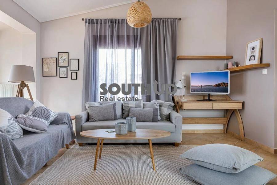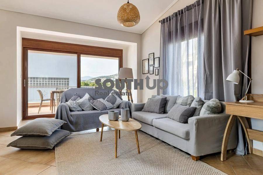 Kalyvia Thorikou, Lagonisi - Apartment 100sqm fully furnished, bedrooms 2, levels 1, 1st (100sqm, 2 bedrooms, living room, kitchen, bathroom), excellent condition, year built 2004, energy class B, living room, kitchen, bathroom, heating type: autonomous (gas), air condition, dual aspect apartment, luminous, panoramic view, storage space, fireplace, balconies, aluminum frames, double glazed windows, door screen, marble floors, night electricity discount rate, secure door, alarm, luxurious, residential zone, north-eastern orientation, access from asphalt, close to sea (up to 1000m).
