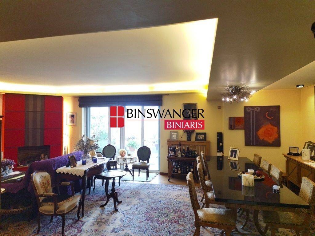 NEO PSYCHIKO: Exceptional 255 sq.m. maisonette spanning the entire 3rd, 4th and 5th floors of a well-maintained building (constructed in 2005), in very good condition. The property includes two large underground parking spaces (with the possibility of accommodating a third small vehicle), two underground storage rooms, and exclusive use of a 92 sq.m. rooftop terrace offering unobstructed panoramic views of the entire Athens basin, including Mount Parnitha, Mount Penteli and Mount Hymettus. The 3rd floor (107 sq.m.) comprises three bedrooms, including a spacious Master Bedroom with a large private balcony overlooking Mount Hymettus, an en-suite bathroom featuring a Jacuzzi hydromassage bathtub, and two additional bedrooms served by a second generous bathroom with bathtub. The 4th floor (120 sq.m.) features a bright and expansive living room with fireplace and large veranda enjoying open views to Mount Hymettus, a spacious independent kitchen with its own balcony, a walk-in closet, and one additional bedroom or office. There is also a comfortable guest WC with the option to install a shower, allowing this room to function as a guest suite if desired. The 5th floor (28 sq.m.) hosts a rooftop bedroom with its own bathroom and kitchenette, offering privacy and flexibility of use. The exclusive-use rooftop terrace is enhanced with a 25 sq.m. pergola, BBQ area, and water and electricity connections, creating an ideal setting for outdoor entertaining. Additional features include large verandas, awnings, insect screens, aluminum window frames with double glazing, autonomous oil heating per level, split-unit air conditioning, oak flooring throughout, ample storage space, built-in wardrobes, security door, video intercom, and alarm system. Ideally located in a quiet neighborhood between Agios Georgios Square and Eleftherias Square, close to schools, local market, supermarkets, and with easy access to Kifisias Avenue, offering excellent connectivity and quality of living.Sale Price: €850,000 (PROPERTY ID 7318 - PARTNER ID 840) EXCLUSIVE MEDIATION - BINSWANGER BINIARIS - CERTIFIED REAL ESTATE BROKERS - CONSULTANTS - VALUERS - PROPERTY MANAGERS, ESTABLISHED 1993, 1 Dimokratias St. & Kifisias Ave., Neo Psychiko. Tel. 210 6829000. Web: www.binswangerbiniaris.com