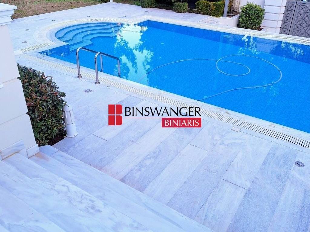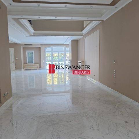 PALAIO PSYCHIKO: Located close to 2nd Square, an ultra-luxurious maisonette with a total area of 425 sq.m. featuring a private pool. The residence boasts luxurious marble finishes, a marble staircase, a four-person elevator, direct access to the beautifully landscaped garden and pool, independent central heating with its own boiler room, burner, tank, and connection to a generator, as well as central air conditioning. Finally, it offers two spacious self-service parking spaces in the basement, which is also equipped with a fire suppression system. More specifically, the maisonette is arranged as follows: Bright semi-basement with windows: Includes a large open-plan playroom with a fireplace, W/C, and a staff room with an en-suite bathroom. Ground floor: Features a comfortable living room with a ceiling height of 3.5 meters, an imposing fireplace, and an atrium. The dining area with its own fireplace is in an open-plan layout with the living room. There is a spacious, independent, luxurious kitchen with built-in appliances, a guest W/C, and a front-facing veranda with views of Mount Hymettus, the garden, and the pool. First floor: Comprises three bedrooms, including one large master bedroom with a fireplace, and two large master children`s bedrooms. Additionally, it includes a cozy sitting area and balconies. Second floor attic: Features a large, independent guest suite with direct access to a very large roof garden with marble flooring and stunning views. Monthly Rent: €10,000 (PROPERTY ID 7309 - AGENT ID 741) - BINSWANGER BINIARIS - CERTIFIED REALTORS - CONSULTANTS - VALUERS - PROPERTY MANAGERS, ESTABLISHED IN 1993, 1 Dimokratias Str. & Kifisias Ave., Neo Psychiko. Tel. 210 6829000. Web: www.binswangerbiniaris.com