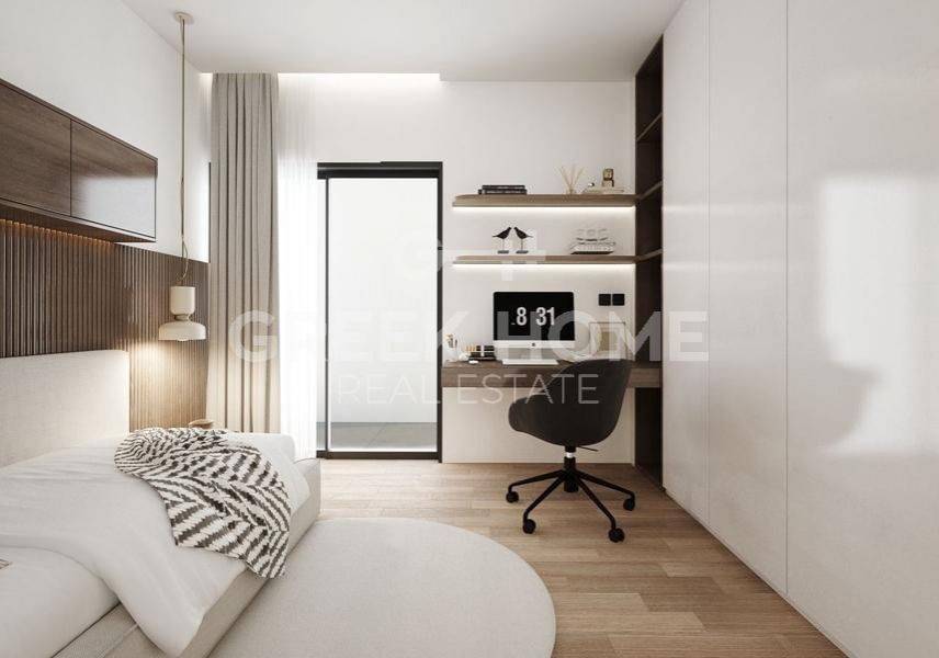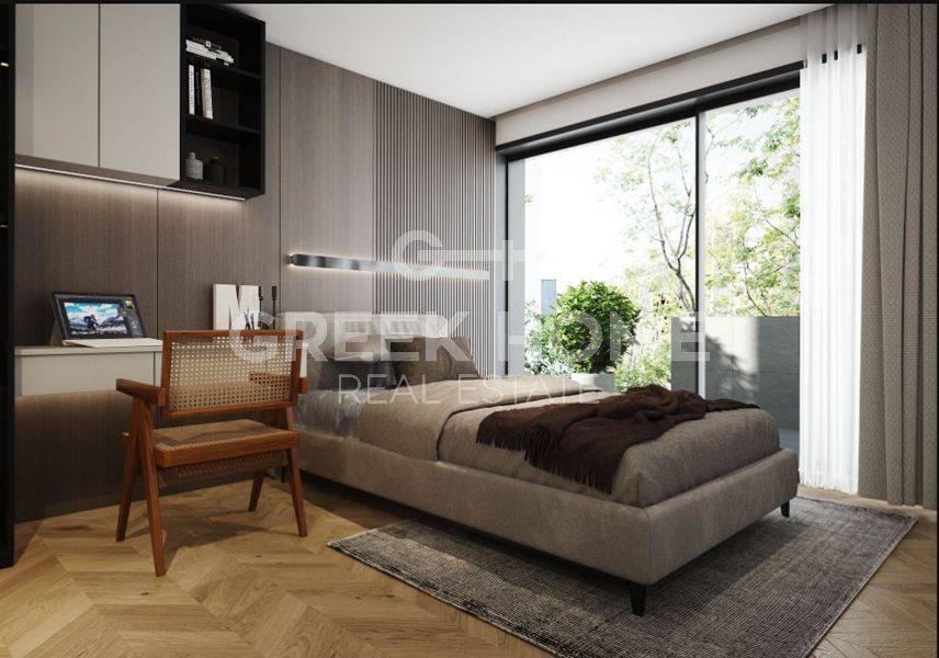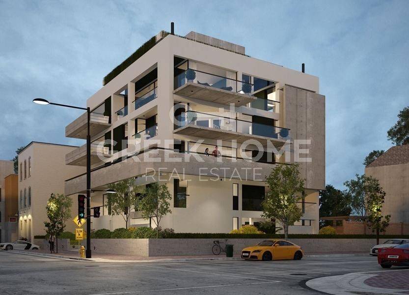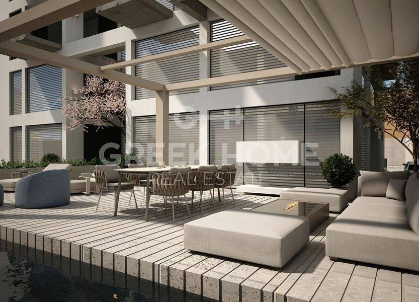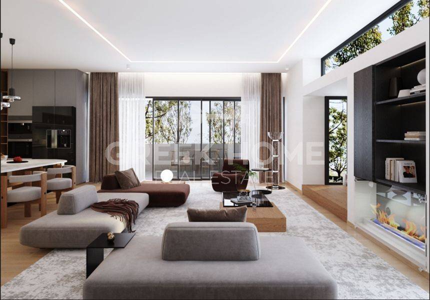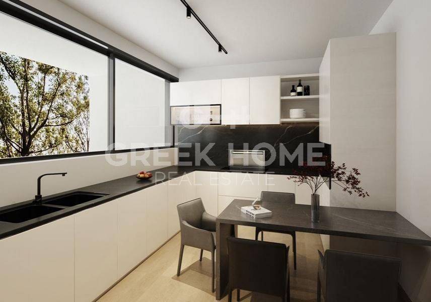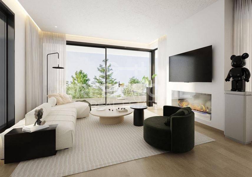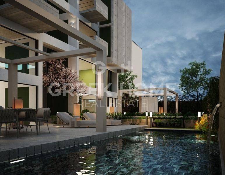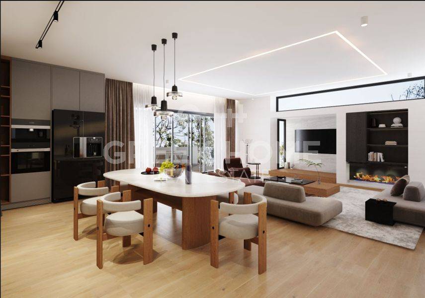 Marousi, Polydroso - Apartment 130sqm bedrooms 4, 2nd, under construction, year built 2026, energy class A++, living room, kitchen, 2 bathrooms, wc, heating type: autonomous (heat pump), air condition, parking covered, quiet, dual aspect apartment, luminous, corner, unobstructed view view, frontage, painted, electric roller shutters, storage space, external thermal insulation, fireplace, balconies, large balconies, elevator, garden, thermal shut-off frames, double glazed windows, door screen, wood floors, handicap ramp, secure door, alarm, surveillance cameras, video doorbell, luxurious, under floor heating, smart home, ev charger, satellite, internet, pets allowed, north-western orientation, close to metro/train (up to 1000m).