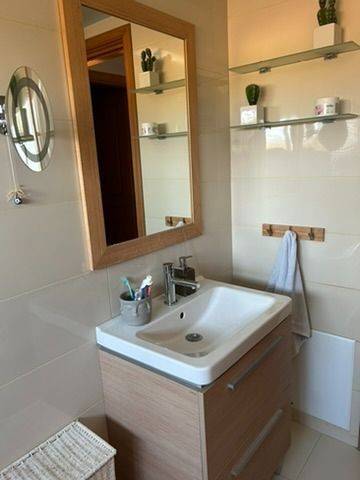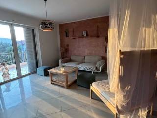Available for rent bright apartment of 102 sq.m. in Markopoulo Attica, located in a quiet area outside the center, with open views to greenery. The property features a spacious living room with fireplace, large balcony doors and direct access to a balcony with unobstructed views. The kitchen is comfortable and functional, offering ample storage space. It consists of 2 bright bedrooms with built-in wardrobes and access to balconies. There is a large bathroom with jacuzzi bathtub and natural light, as well as an additional WC. The apartment also includes a large private garden and a parking space. It is offered with basic electrical appliances (oven, refrigerator, washing machine) and minimal furniture, allowing flexibility in arranging the space according to your needs. An ideal choice for those seeking a quiet home with comfortable spaces and connection to nature.