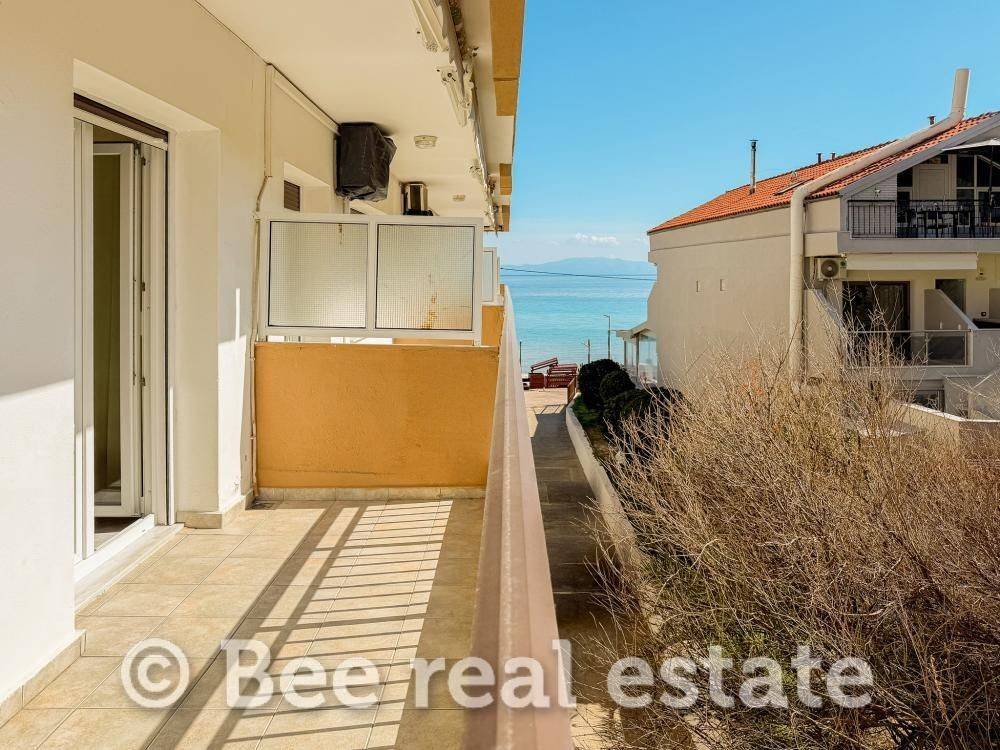 Apartment for Sale by the Sea – Kallithea Beach, Halkidiki A second-floor apartment is offered for sale, with a total area of 47.25 sq.m. (39.40 sq.m. net), located on the beachfront of Kallithea, Halkidiki. The property is situated in a first-line building directly in front of the sea, offering a side view of the Toroneos Gulf, on the first peninsula of Halkidiki. It is offered fully furnished and equipped, including a Sharp air-conditioning unit, a 21-inch television, a 150 cm refrigerator, kitchen hobs with extractor hood, and PVC double-glazed window frames. The apartment also includes sleeping arrangements consisting of one double bed (150 cm) and two single beds (80 cm each). The property was partially renovated in 2019, with the installation of new PVC double-glazed windows, while a solar water heater has been installed for hot water supply. Access is particularly convenient, as the property is located just 45 minutes from Thessaloniki International Airport “Macedonia” and approximately one hour from the city center. Its privileged location makes it an ideal retreat for those seeking direct contact with the sea and the tranquility of the coastal landscape. This property represents a rare investment opportunity, as the availability of properties in this specific area is extremely limited. For more information or to schedule a viewing, please contact our office.