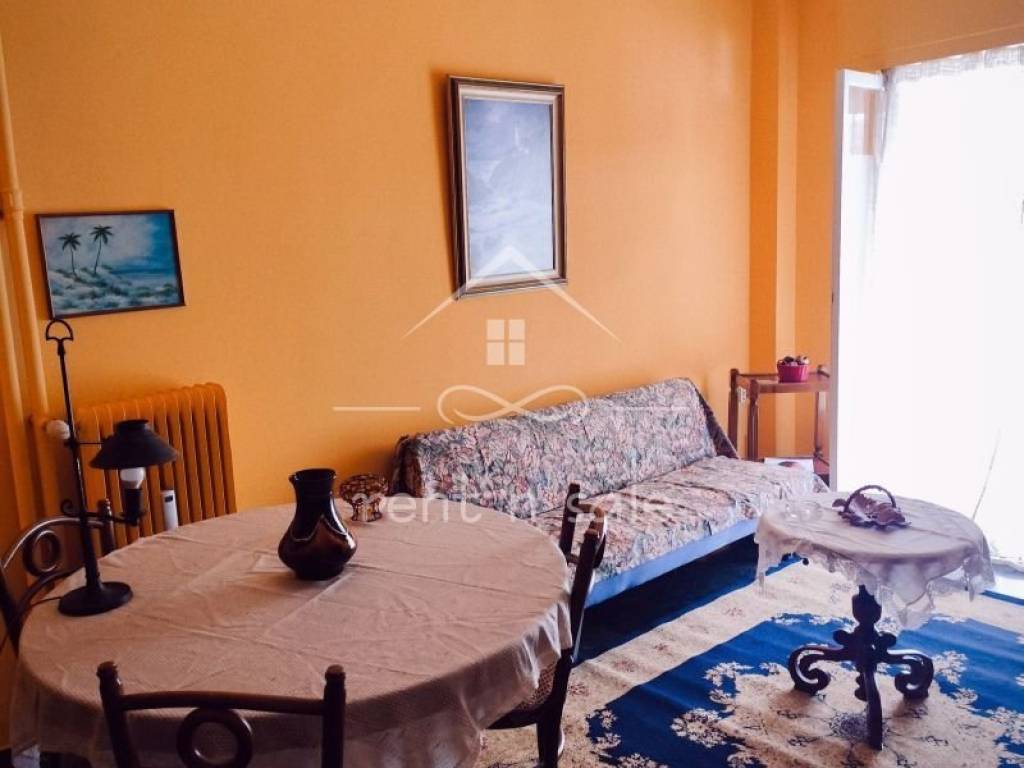 50 sq.m. fully furnished apartment for rent in Kinosargous, built in 1974, elevated ground floor, facade, with one bedroom, living room, kitchen, bathroom, electric devices, autonomous oil heating, near public transportation and market. At least 2 years contract.