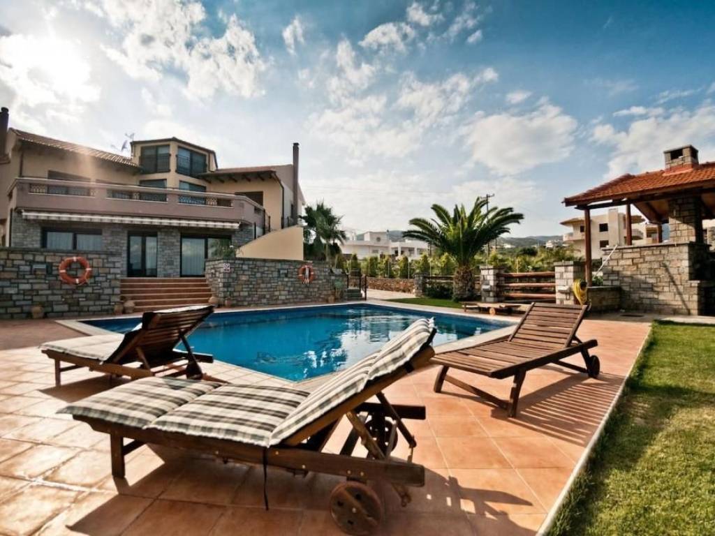 MUSE is a luxury 4 bedroom villa, located on the outskirts of the cosmopolitan town of Agios Nikolaos. This impressive residence sits within its own private grounds, offering breathtaking panoramic views over the town and the sparkling Mirabello Bay. From the moment you step inside MUSE you are welcomed by a bright and spacious open plan living area, designed to create an elegant yet relaxed atmosphere. Large openings allow natural light to flood the space, enhancing the sense of comfort and luxury. The villa features a stunning 65 sq.m. private swimming pool with an eye catching mosaic design, complemented by a generous BBQ area set beneath a shaded pergola, perfect for unforgettable summer evenings. The ground floor is thoughtfully designed as an expansive open plan space, comprising a stylish living room, a dining area comfortably seating up to eight guests and a fully equipped modern kitchen fitted with high end appliances. The living area is furnished with comfortable sofas, a cozy fireplace, a home cinema system and satellite TV, making it ideal for both relaxation and entertainment. A beautifully curved wooden staircase leads to the first floor, where three of the bedrooms are located. The master bedroom offers an en suite bathroom with a luxurious steam shower. The remaining two bedrooms, one twin and one double, share a bathroom featuring a Jacuzzi bathtub. All rooms open onto a large terrace with stunning views over the pool and landscaped gardens. The fourth bedroom is situated on the second floor, offering complete privacy along with its own bathroom with a shower. All bedrooms are fully air conditioned and equipped with wardrobes, satellite TV and DVD players. The outdoor areas of MUSE are equally impressive. A large furnished veranda, slightly elevated above the pool and garden, provides a perfect vantage point to enjoy the surroundings. The pool itself includes a Jacuzzi feature and a reverse swim jet for added enjoyment. Under the pergola, alongside the BBQ, you will also find a traditional stone oven and a large dining table, ideal for al fresco dining experiences. The beautifully landscaped garden features lush lawns, palm trees and a hammock, adding a serene and luxurious touch to the already captivating setting. Price: 950.000€ For more information or to arrange a private viewing, please do not hesitate to contact us. We will be happy to assist you. LOYAL GROUP | Luxury Realty Experience info@loyalgrouprealty.com www.loyalgrouprealty.com 25th August Street 33, Heraklion, Crete, 71202 +30 698 770 0726 +30 697 617 0717 +30 2810 280 288