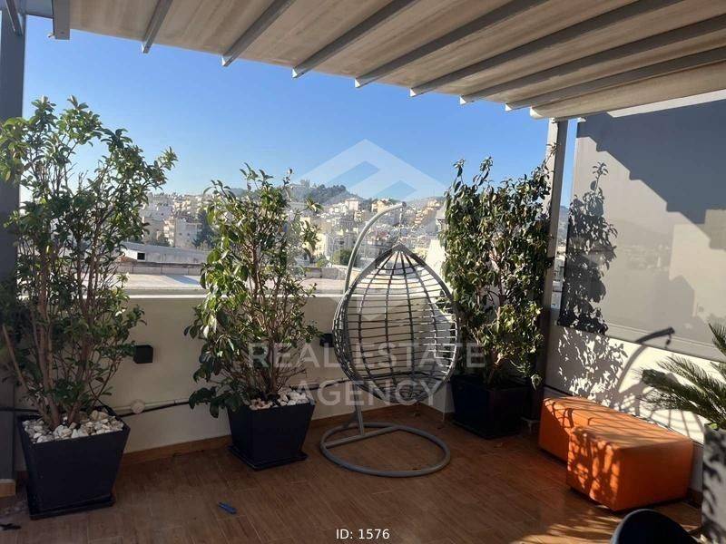 A luxurious and fully equipped smart loft of 33 sq m is available for rent in Chaidari, on the 2nd floor. This is a modern and functional open space that combines a living room, kitchen and bedroom, with a smart wall bed that opens and closes, ensuring excellent use of space and comfort in everyday life. The property is fully furnished and equipped with all the necessary electrical appliances, as well as a washing machine and dryer, while complete household equipment (dishes, glasses, etc.) is provided, ready for immediate occupancy. It has a smart home system with voice commands, electric roller shutters and card entry, offering a high level of comfort and technology. For maximum security, it includes an alarm and cameras with 24-hour recording. The impressive 100 sq m terrace stands out with a panoramic view of Athens, ideal for relaxation, with shade awnings for comfort all year round. The price includes all expenses (utilities, electricity, water and internet), making it a particularly practical choice without additional charges. Available from early May. Ideal for students, teachers, doctors in training or professionals looking for a modern, safe and quality way of living.