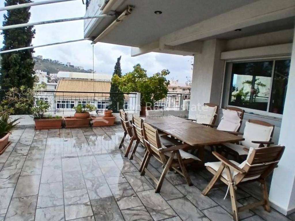 For sale in Melissia: an impressive renovated corner apartment on the 4th floor with a total area of 130 sq.m., front-facing, bright, and offering unobstructed views. The property features spacious terraces totaling 120 sq.m., ideal for outdoor living and entertaining.