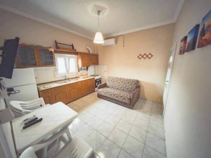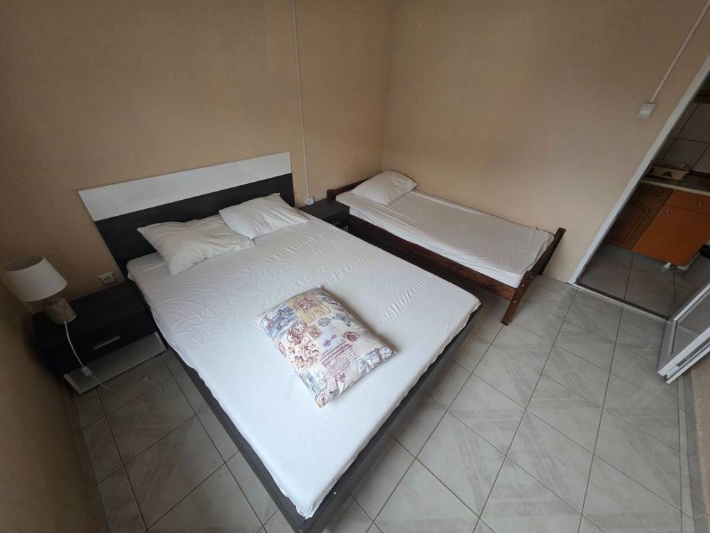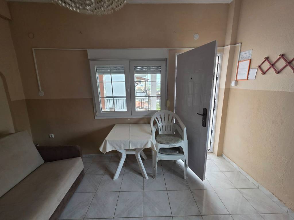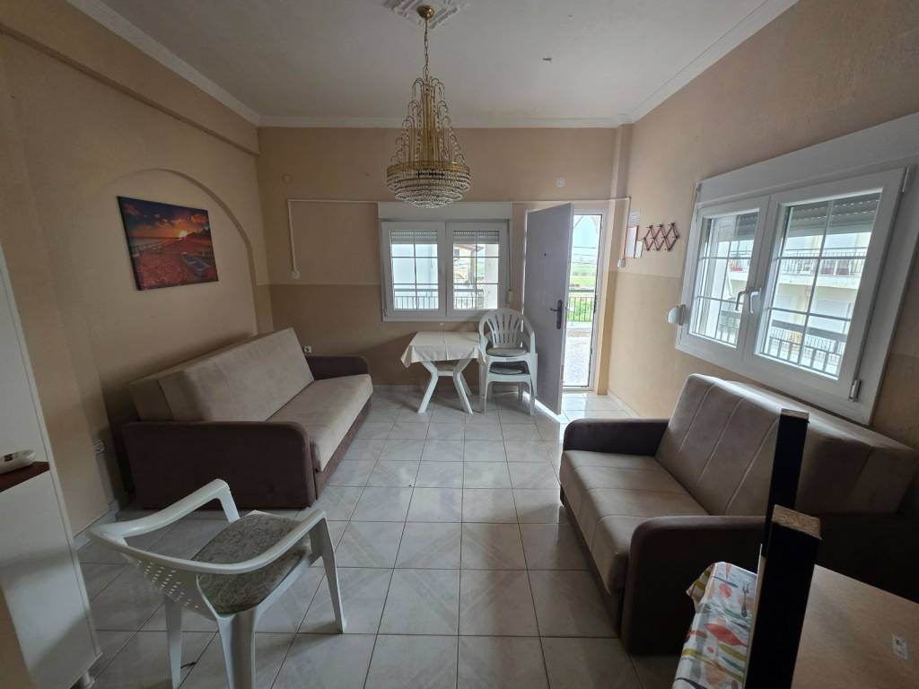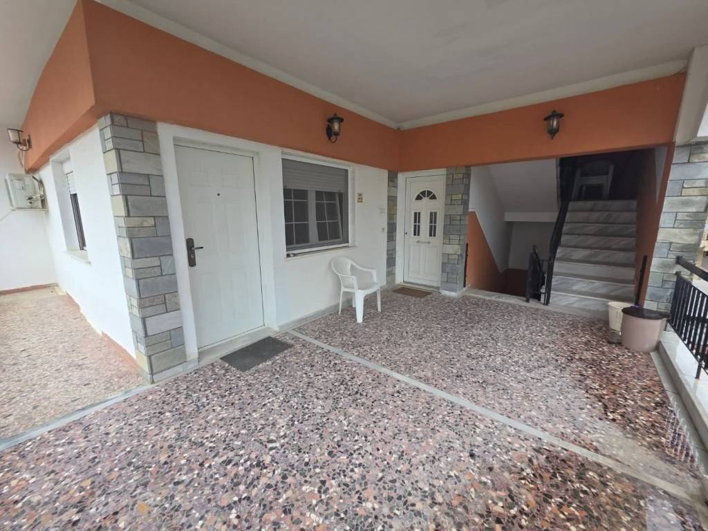 Flogita, Chalkidiki For sale is a 110m2 apartment on the 1st floor. The apartment is divided into 2 smaller apartments: 39m2 and 41m2, it also has a 30m2 storage room on the ground floor and a large balcony in front! It is approximately 250m from the beach and the center of the village!