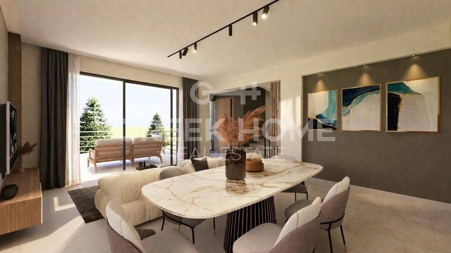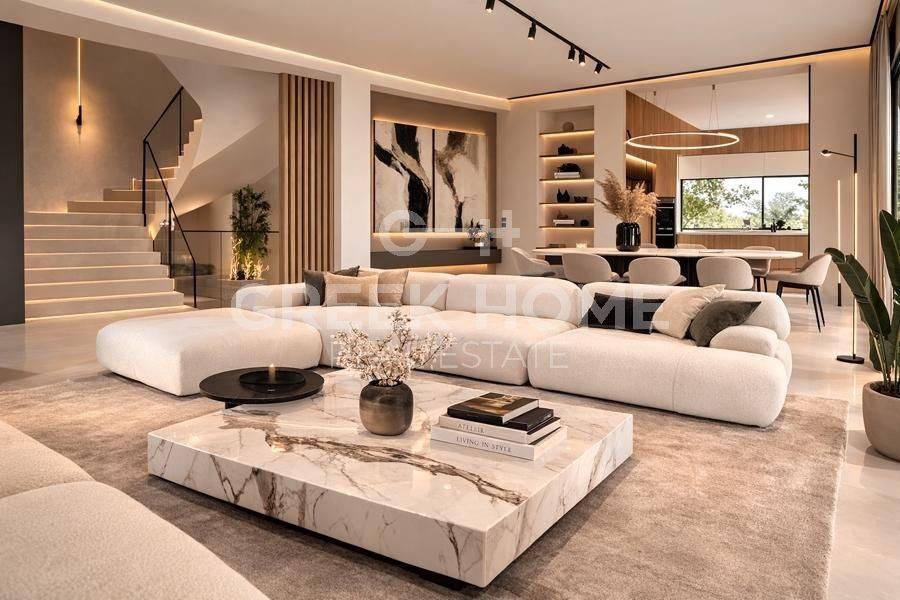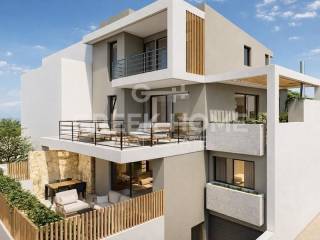 Gerakas, Mpalana - Full floor Maisonette 138sqm bedrooms 3, levels 2, 1st - attic, under construction, year built 2024, energy class A, living room, hall, kitchen, 2 bathrooms, 2 wc, heating type: individual unit (heat pump), air condition, parking covered, quiet, dual aspect apartment, luminous, painted, drop ceiling, electric roller shutters, storage space, external thermal insulation, fireplace, balconies, large balconies, elevator, built in appliances, thermal shut-off frames, double glazed windows, door screen, ceramic tiles floors, handicap ramp, office, secure door, alarm, surveillance cameras, video doorbell, luxurious, under floor heating, internal staircase, playroom, cloakroom, service room, ev charger, satellite, internet, laundry room, investment property.
