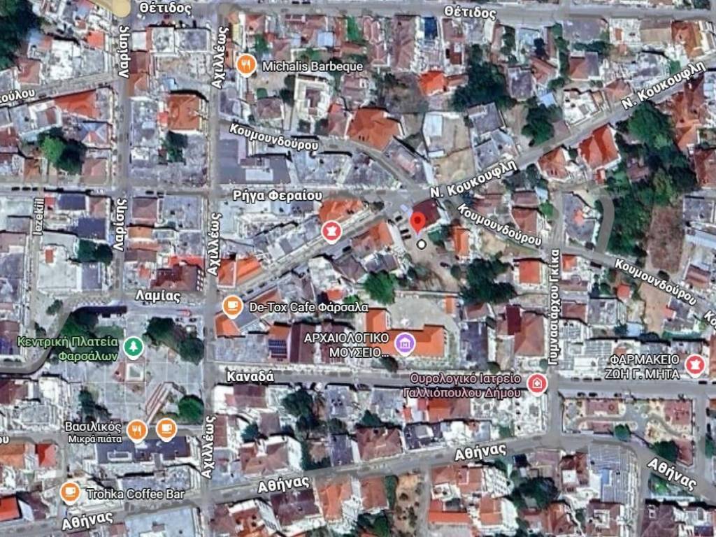 Land Plot of 762.89sq.m within the city plan, flat, integral, buildable with a coverage factor of 60%, a building factor of 1.6, a maximum height of 13m and plot face of 14.04m. The land plot is located in Farsala Town in the Prefecture of Larissa, on Koukoufli Street, 120m from the Central Square of Farsala and 160m from Kanada Street. Maconstruction S.A. Office Hours Monday to Friday │ 09:00am to 17:00pm