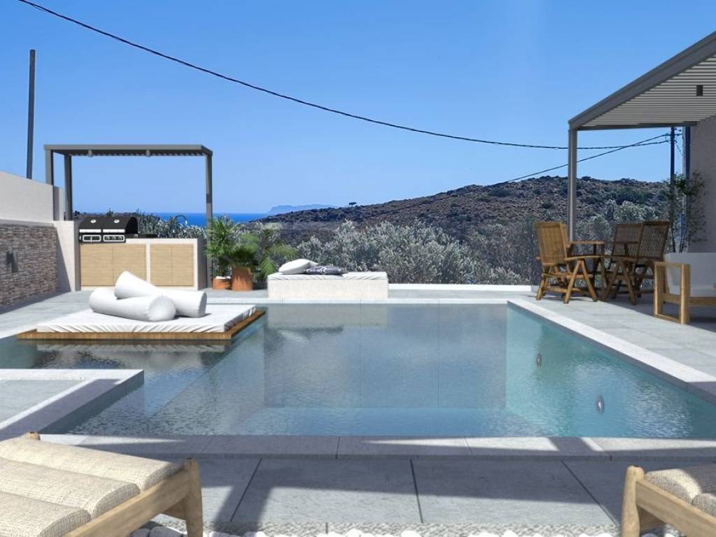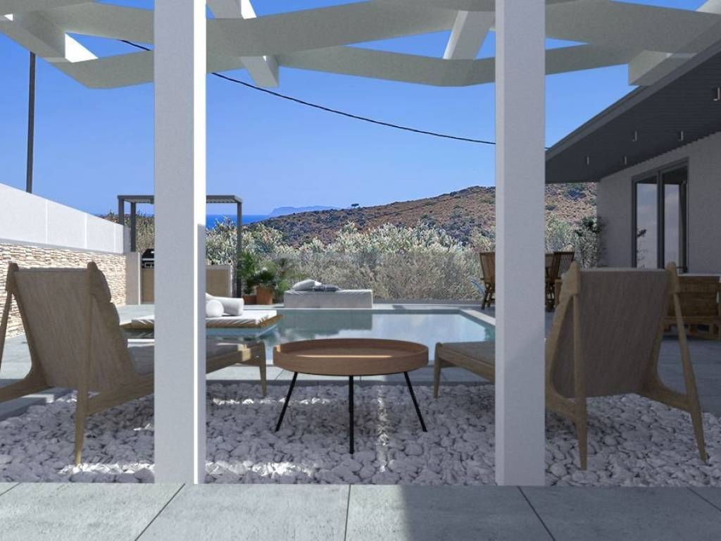 A Beautiful and cozy Detached house under construction, 94 sq.m., on a 250 sq.m. plot, located in the lovely village of Afrata. The property features 2 spacious bedrooms each one with it's own bathroom, an open-plan kitchen and living room, and offers beautiful sea and mountain views from it's courtyard. It is situated in a peaceful and quiet area, ideal for relaxation and tranquility. The house is only 1.3 km from the picturesque pebble beach, 6 km from the village of Kolymbari, and 30 km from the city of Chania. The property will also include a private swimming pool, making it an excellent choice for either a permanent residence or a holiday home. Delivery date: 12/2026 Property code: AK 2426 Price: €480,000 Real estate agency fee: 2% (+VAT)