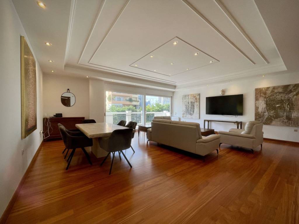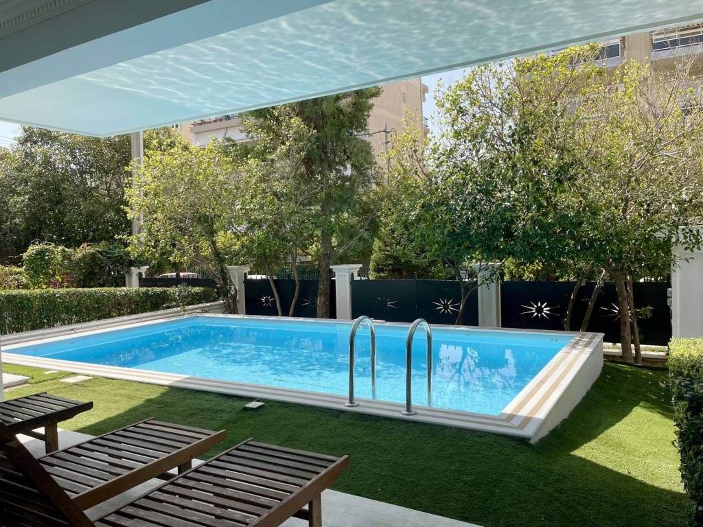 In one of the most central yet peaceful neighborhoods of Voula, just a five-minute stroll from lively Voula Square and only eight minutes on foot from the stunning beach and the sea, lies a luxurious first-floor apartment that perfectly blends elegance, comfort, and convenience. Built in 2011, this 150 sq.m. residence is part of a refined and meticulously maintained building with only seven privately used apartments, designed with high-end materials and finishes. The property is nestled in a charming area that offers tranquility without sacrificing accessibility, surrounded by greenery and upscale residences. The apartment welcomes you with an expansive open-plan living and dining area that opens onto a spacious balcony overlooking the beautifully landscaped garden and the shared swimming pool—an ideal spot for relaxing or entertaining guests. The independent, ultra-modern kitchen is fully equipped with top-tier appliances and features a sleek pass-through bar that connects to the living room, adding both functionality and flair. It comprises three bright and airy bedrooms, including a luxurious master suite with an ensuite bathroom and a generous walk-in closet. The additional two bedrooms are served by a second elegant and spacious bathroom. Both bathrooms are fitted with hydromassage and jacuzzi units, offering spa-like relaxation at home. Premium details abound throughout, from the solid wood high-quality construction to the oak wooden floors that run across the entire home (excluding the bathrooms). The property is equipped with a state-of-the-art alarm and lighting system, autonomous heating, air conditioning, an elevator, a private underground storage room, and a dedicated parking space. Situated close to grocery stores, sports facilities, an indoor gym, schools, the airport, and a hospital, this apartment combines the best of coastal living with urban convenience—ideal for families or individuals seeking both luxury and practicality. Set in the coveted Athens Riviera, Voula is an ideal address for discerning tenants seeking a refined coastal lifestyle with effortless access to the capital. This elegant residential enclave appeals to families, executives, and international residents who value privacy, prestige, and the sea at their doorstep. Daily life is seamless: upscale boutiques, cafés, supermarkets, and quality schools are close by, while Glyfada’s premium retail and dining scene is around 10 minutes by car. Central Athens is reachable in about 30–40 minutes by car, and Athens International Airport in roughly 30 minutes, ensuring smooth business and leisure travel. Leisure is defined by the Riviera: beaches and beach clubs are just minutes away, with sailing, watersports, and scenic seaside promenades all within easy reach. For culture and nightlife, the city’s museums, theaters, and fine dining are a comfortable drive away. With its rare blend of coastal serenity, polished infrastructure, and swift connectivity, Voula offers an enduringly glamorous setting for a truly elevated home.