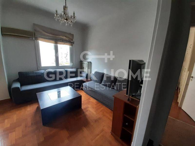 Pangrati - Apartment 75sqm bedrooms 2, 3rd, year built 1961, renovation year 2004, energy class E, living room, kitchen, bathroom, heating type: central (oil), air condition, quiet, dual aspect apartment, luminous, grove view, frontage, painted, storage space, balconies, tents, elevator, loft storage, synthetic frames, double glazed windows, door screen, wood & mosaic floors, secure door.