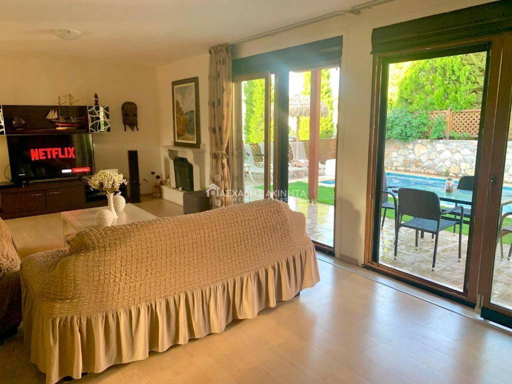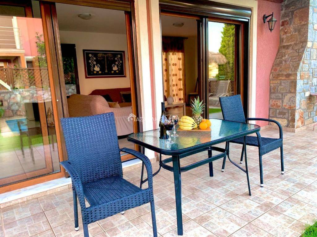 Furnished and electrically equipped ground floor maisonette, 2 levels, 150 sq.m. It has a single living room-kitchen area, 3 bedrooms, 2 bathrooms, air conditioning, solar, independent PPC and water clock, balcony, garden, pergola, swimming pool. Sale price 370,000 euros. Our goal is to respect and serve the customer in finding the property they are looking for. For this purpose we use technology for the best description in what we undertake with rich visual material, photos and videos. Contact hours 9:00 am – 16:00 pm. Property code 20267.