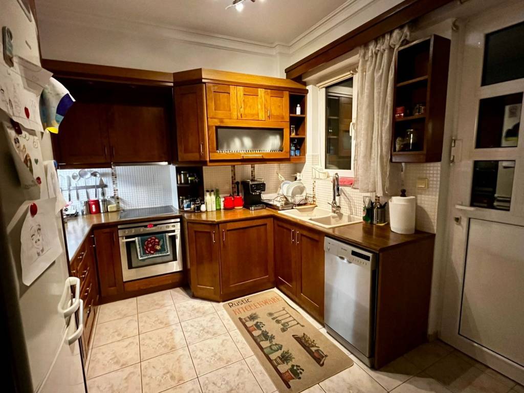 Zaloni’s Real Estate presents a functional, fully furnished 102-square-meter first-floor apartment (penthouse in a two-story building) in Kato Kifissia, with direct access to major thoroughfares, the market, private and public schools (Saint Catherine, Montessori education). Built in 2004 using top-quality materials, its architectural design makes it capable of meeting a variety of needs. It consists of an open-concept living room, dining area, and kitchen, three spacious bedrooms, a bathroom, and a separate toilet. Modern, designer furniture complements the space without overwhelming it, lending it charm and comfort. The kitchen is equipped with all appliances and features plenty of cabinetry. The living room and lounge area, complete with a fireplace, feature a large extendable table, six chairs, and a large sofa with a coffee table, armchair, and ottoman. One bedroom has a double bed with an ergonomic mattress and nightstands; the second has a double bunk bed and a desk; and the third has a sofa that converts into a double bed and a desk. Finally, the bathroom features a bathtub with a jacuzzi. w.c.There is a separate washing machine. The closets in the rooms offer ample storage space. There are balconies around the perimeter and large windows. Natural gas heating, aluminum window frames, double-glazed windows with screens, and air conditioning in all rooms. Available from May 1, 2026. Rental price: 1,200 euros.