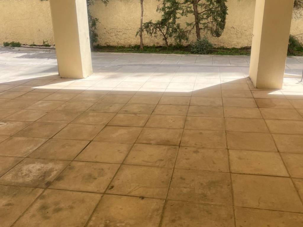 Parking πυλωτής προφυλαγμένο από ήλιο και βροχή σε πολυκατοικία με γκαραζόπορτα.