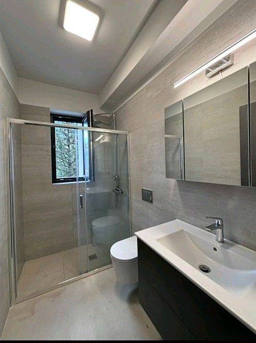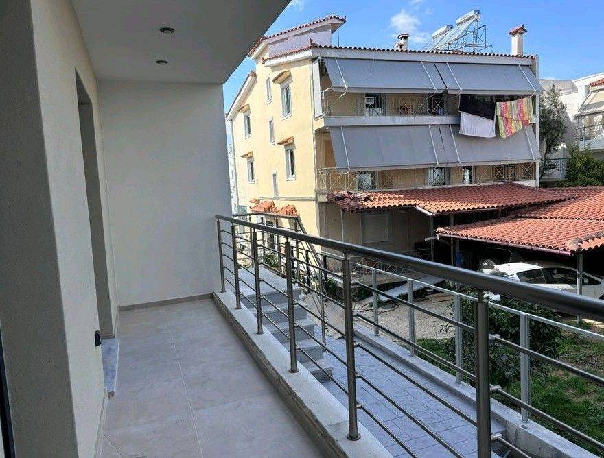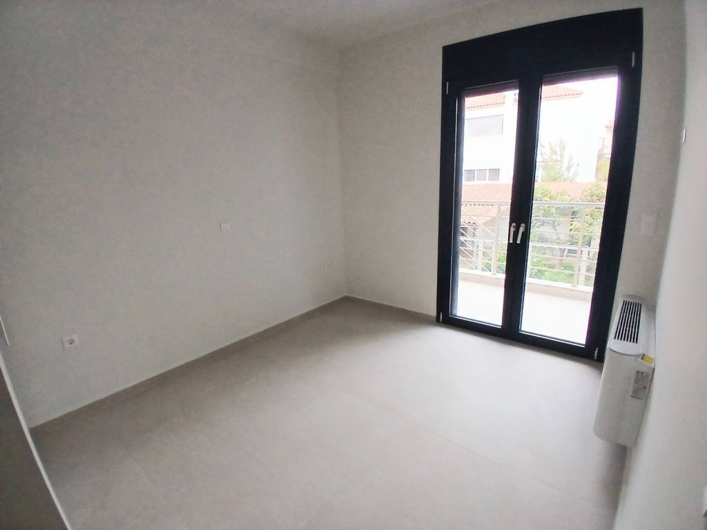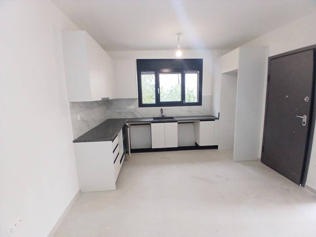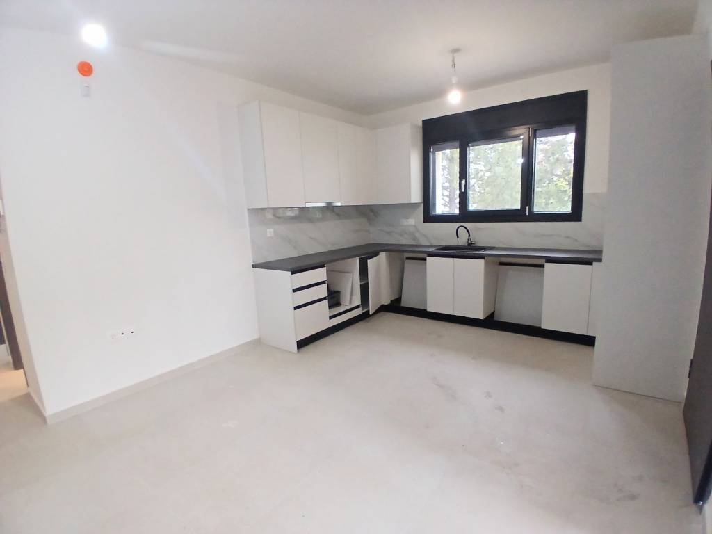 Excellent luxury first floor apartment, built in 2026, never inhabited, comfortable bright living room open to the kitchen which has many cabinets, comfortable terrace with open view, one bedroom with wardrobes, bathroom, security door, aluminum frames with thermal break, double glazing, screens, autonomous heating with heat pump, air conditioning with fan coil, solar water heater, alarm, thermal insulation, energy class A +, security cameras in the building, photovoltaics to support common areas, quality and luxurious construction, 10sqm warehouse, near Gerakas Square, near market, schools and public transport