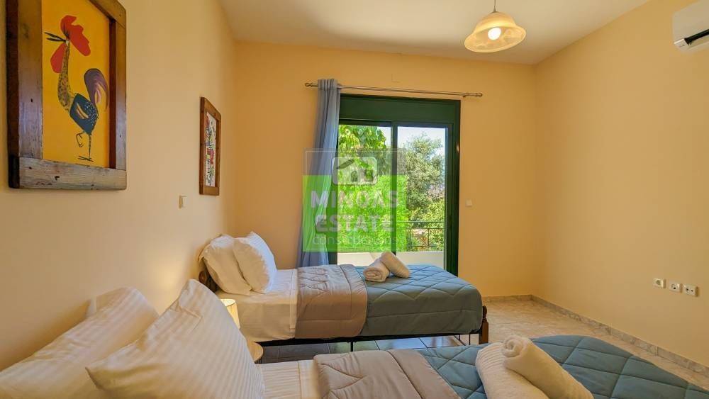Vamos, Kefalas: Luxury villa for sale, fully furnished 124 sq.m. in 403 sq.m. plot, with a frontage of 20m. on the ground floor with a fireplace and air conditioning. It consists of 3 bedrooms, 1 living room kitchen, Garden, bathroom and 1 WC. It is equipped with all electrical appliances, built in 2004, painted and has mountain views, swimming pool, aluminum frames with double glazing, energy class E, tiled floors, solar water heater. The property is recommended as an investment or permanent residence as it is located in the beautiful village of Kefalas very close to the area of Vamos where there are schools, supermarkets, medical center, pharmacies. The garden has a stone fence and a swimming pool and many plants and trees! It is ideal for families or workers without monthly utilities. Price €300,000 | Property Code: #M-14562 Vamos, Kefalas: Luxusvilla zu verkaufen, komplett möbliert, 124 qm. in 403 qm Grundstück, mit einer Front von 20m. on the ground floor with fireplace and air conditioning. It consists of 3 bedrooms, 1 kitchen, garden, bathroom and 1 toilet. Es ist mit allen Elektrogeräten ausgestattt, Baujahr 2004, gestrichen und verfütt über Bergblick, Swimmingpool, Aluminiumrahmen mit Doppelverglasung, Energieklasse E, Fliesenböden, Solarwarmwasserbereiter. Die Immobilie wird als Investment oder Dauerwohnsitz empflen, da sie sich im schönen Dorf Kefalas ganz der Nähe der Gegend von Vamos befindet, wo es Schools, Supermärkte, ein medizinisches Zentrum und Apotheken gibt. The garden has a stone fence and many plants and trees! Er ist ideal für Familien oder Arbeiter ohne monatliche Nebenkosten und Haustiere sind erlaubt. Price €300,000 Immobiliencode: #M-14562 Vamos, Kefalas: Luxury villa for sale, fully furnished 124 sq.m. in 403 sq.m. plot, with a frontage of 20m. on the ground floor with a fireplace and air conditioning. It consists of 3 bedrooms, 1 living room kitchen, Garden, bathroom and 1 WC. It is equipped with all electrical appliances, built in 2004, painted and has mountain views, swimming pool, aluminum frames with double glazing, energy class E, tiled floors, solar water heater. The property is recommended as an investment or permanent residence as it is located in the beautiful village of Kefalas very close to the area of Vamos where there are schools, supermarkets, medical center, pharmacies. The garden has a stone fence and many plants and trees! It is ideal for families or workers with no monthly utilities and pets are allowed. Price €300,000 Property Code: #M-14562