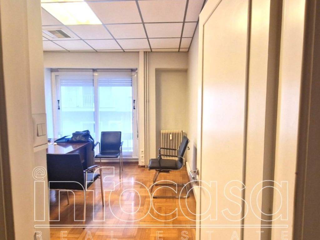 Οffice space, total surface area of 100 sq.m., raised ground floor. The property consists of five areas: four functional office spaces and one smaller storage room, WC and kitchen. Two of the main office spaces are separated by a sliding door, offering flexibility. It features autonomous heating with central boiler, aluminum window frames with double glazing, wooden floors and security door. The property is located in a prime area, close to the Metro station. Contact person: Eliza Keremetzi, +30 693 239 0840.