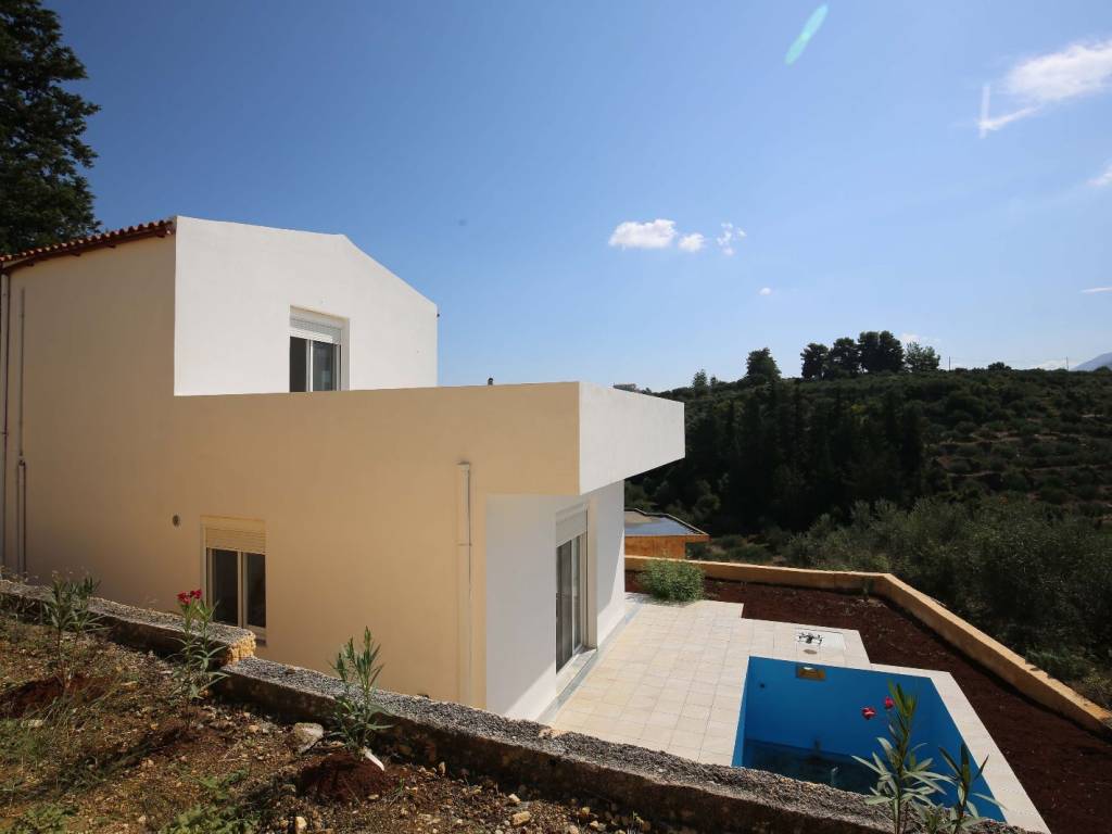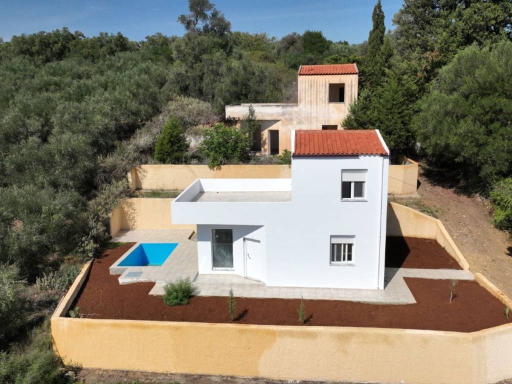 Newly built house for sale in Kalamitsi-Amigdalou Apokoronou area, a very quiet and green area of Crete. The house was built in 2012 and finished in 2023. It has a swimming pool, garden with newly planted plants, garage, solar panel, spacious balcony and 2 finished bathrooms. On the ground floor the kitchen is combined with the dining room and living room and has access to the garden and the pool. There is also is an empty room that can be equipped for the needs of the future owner. The 1st floor of this beautiful house offers a bedroom, a bathroom and a spacious balcony overlooking the nearby village and the beauty of the surrounding nature. This house is ideal for those looking for peace and tranquility. It can be used as a vacation home, as well as for renting. The house is located 15 minutes by car from the beautiful beach of Georgioupolis.