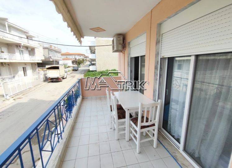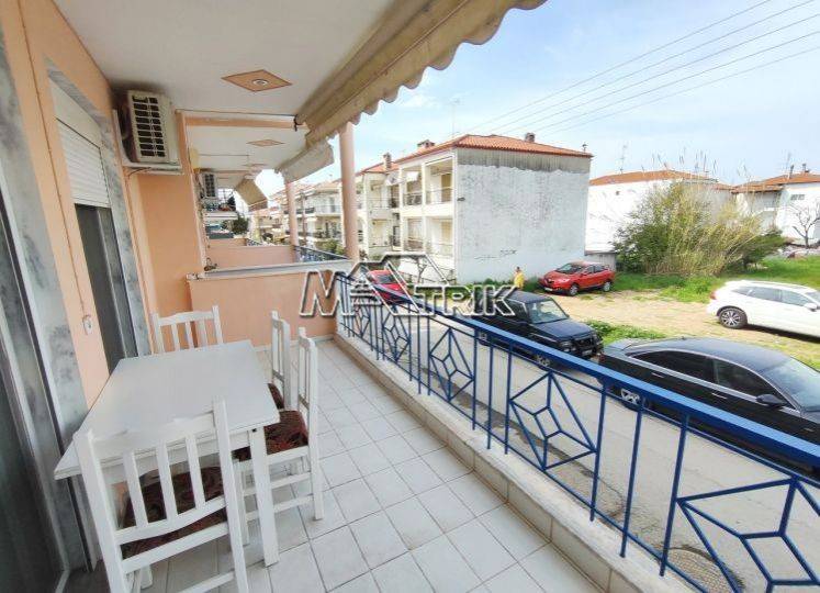 Chalkidiki, Flogita. Apartment 55 sqm on the first floor in a residential complex, corner, bright and front-facing, in a central location very close to shops and just 250 meters from the beach. The property consists of two bedrooms, one bathroom with shower and an open-plan living room with kitchen. It features tiled floors, aluminium frames with tilt mechanism and double glazing, mosquito screens, wardrobes and three air conditioning units. The apartment is sold fully furnished and equipped with all electrical appliances. Ideal for holiday home or investment use.