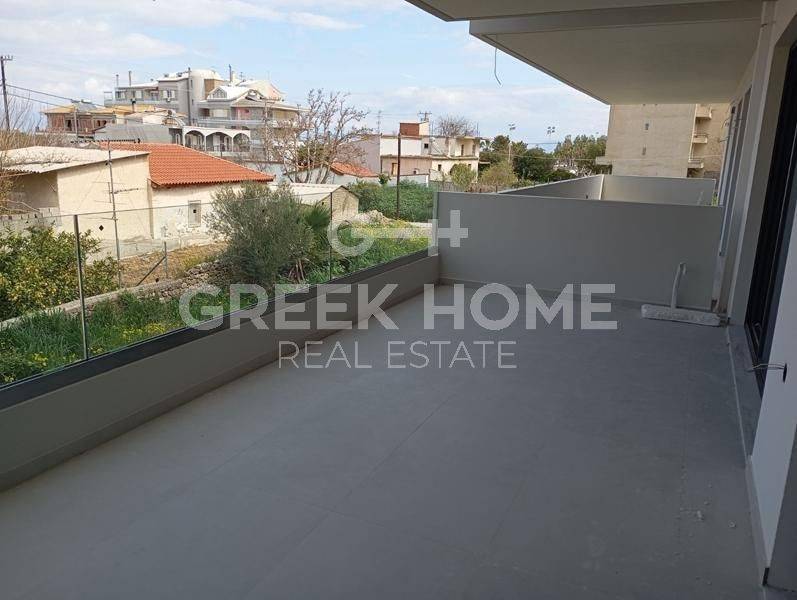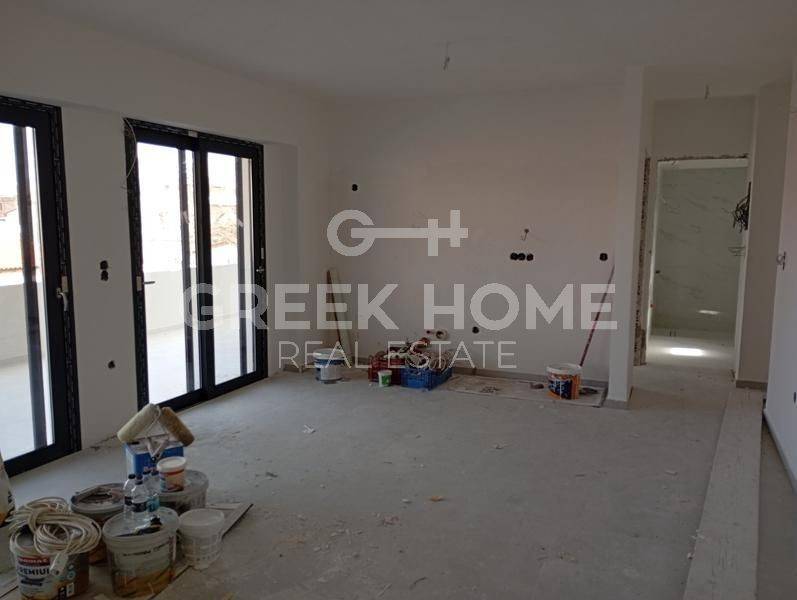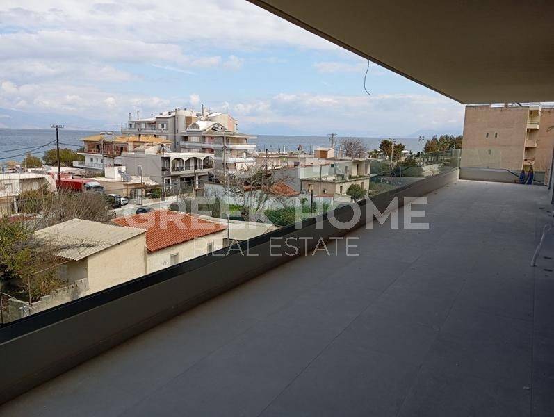 Xylokastro, Centre - Apartment 73sqm bedrooms 2, 3rd, newly built, year built 2024, energy class A, living room, hall, kitchen, bathroom, heating type: autonomous (heat pump), air condition, parking, quiet, luminous, corner, sea view, frontage, painted, solar heater, external thermal insulation, large balconies, elevator, aluminum frames, double glazed windows, door screen, ceramic tiles floors, secure door, sea front, south-eastern orientation, close to sea (up to 200m).