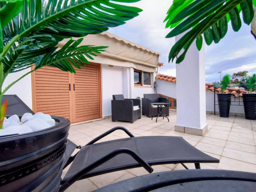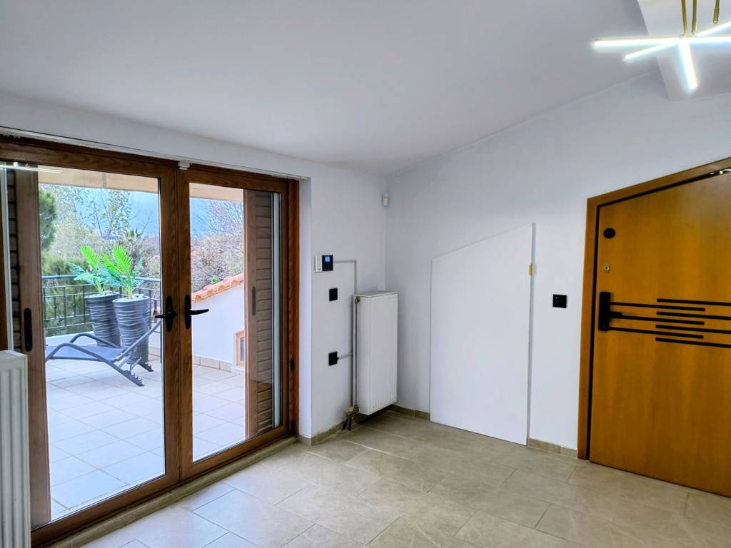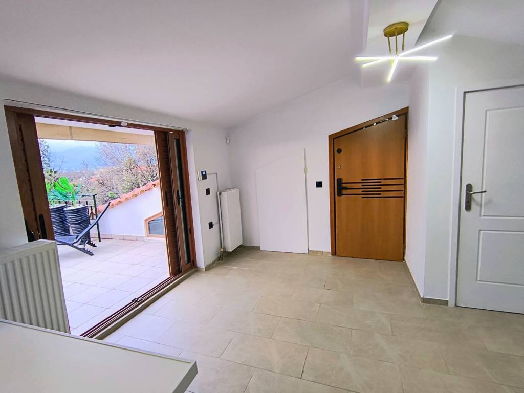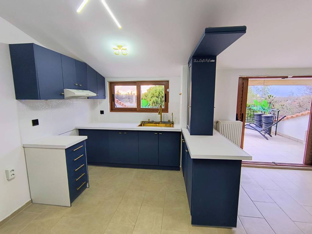 FOR RENT: Smart Loft – Panoramic Views & High-Tech Living Located in one of the area's quietest neighborhoods, just 800 meters from the Electric Railway station, this unique 2nd-floor loft is now available for rent. Space Distribution The property offers a total of 104 sq.m. of usable space: Primary Living Areas: 50 sq.m. with a ceiling height of over 2.20m. Auxiliary Spaces: 54 sq.m. with a ceiling height below 2.20m (ideal for storage, low-profile furniture, or creating cozy "nook" areas). Layout: An open-plan living room and kitchen, one spacious master bedroom, and two additional auxiliary rooms that can serve as a second bedroom and storage. Outdoor Living & Views Two Verandas: A large 28 sq.m. main terrace and a secondary 9 sq.m. balcony. Unobstructed Views: A breathtaking panoramic sweep of Mount Parnitha. The property is surrounded by open space with no adjacent apartment blocks, ensuring absolute peace and privacy. Smart Home & Technology Smart Systems: Integrated alarm, smart lock, and smart lighting. Connectivity: Pre-installed fiber optic wiring. Modern Kitchen: State-of-the-art sink featuring a "waterfall" function, integrated water filter, digital temperature display, and a built-in glass rinser. Additional Amenities Access to a large garden featuring a BBQ area. Εasy parking. Autonomous oil heating. Note: The property is located on the 2nd floor (no elevator).