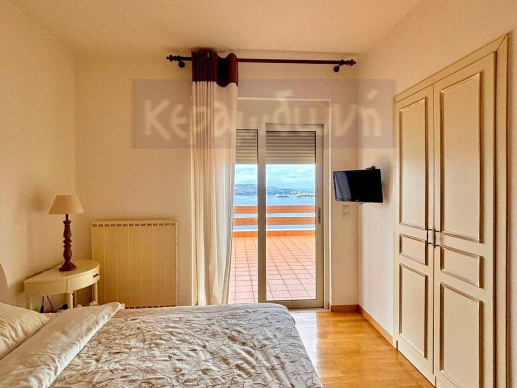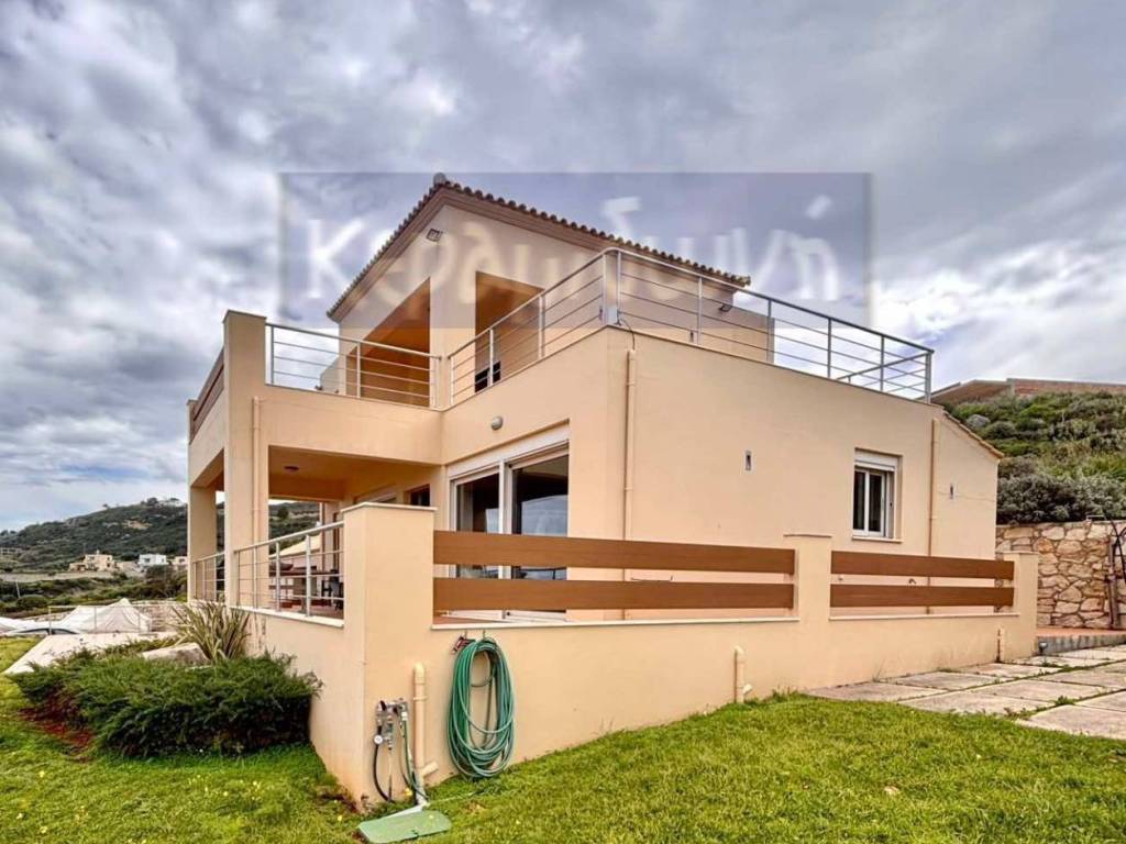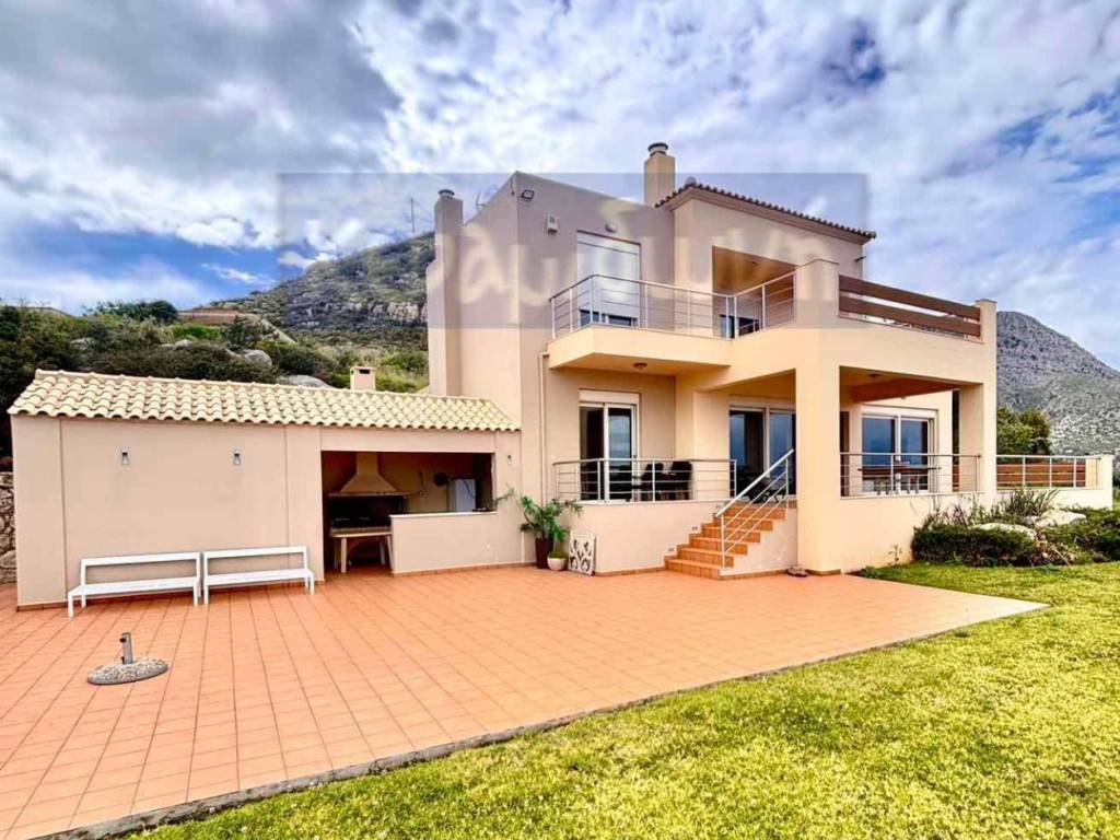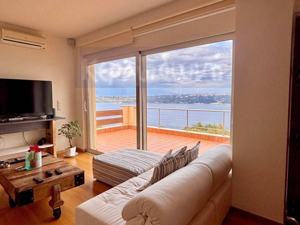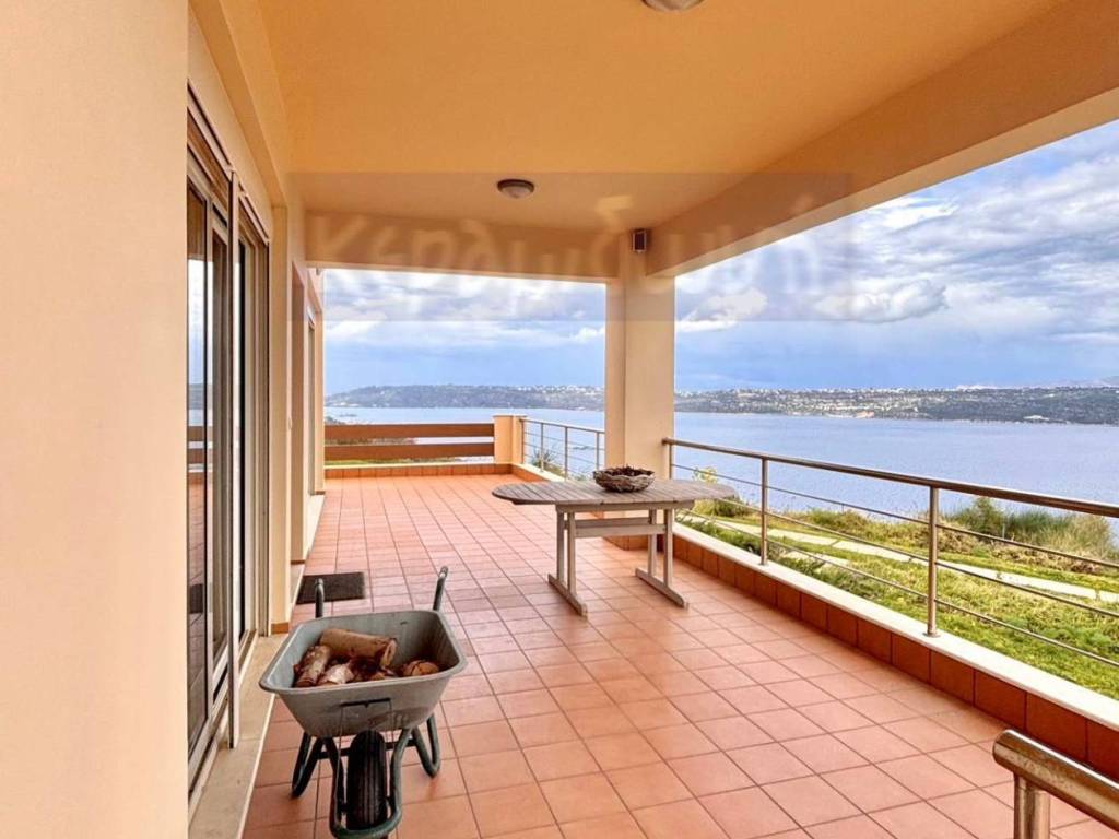A dream detached house in Megala Horafia, east of the city of Chania, on a unique 6,025 sq m parcel of land with unobstructed, panoramic views of Souda Bay, is available for sale. It consists of -2 floors -open living room with fireplace and dining area -Living room -kitchen with built-in electrical appliances, German mechanisms, 90 cm oven, gas connection, corian countertops - 3 bedrooms with built-in wardrobes (1 master with dressing room) - 2 bathrooms (one with bathtub, the other with shower) - internal storage room with shelves, wardrobes & washer/dryer installation - external storage room 10 sq m - large verandas on both floors to enjoy the view from all rooms - covered barbecue area with kitchen facilities - open parking for 4 cars - storage room with heating installation - landscaped garden with ornamental plants and trees - stone fencing and sliding entrance door, which opens with an electric mechanism. In terms of technical characteristics: - oil heating - thermally insulated aluminum frames with screens and awnings - cast iron fireplace with air ducts for better heat efficiency - wooden floors throughout the house, tiles in the kitchen and bathrooms. - Air Conditioning in all areas - solar water heater - insulation on all sides of the building This is a modern house designed with ergonomics and service in mind for its residents. The natural lighting, achieved with large glass panels, is excellent. At the same time, due to the design, not a single centimeter of the truly magnificent view is lost. There is a building permit in force for the construction of another 118 sq.m. residence on the parcel of land. The location provides very easy access to the Chania-Rethymno National Road. All this makes the property a very worthy choice for anyone who desires the tranquility of the area but does not want to move away from the city, the center of which is 14 km. away. Alternatively, there is the possibility of tourist exploitation, as by utilizing the existing building permit , the entire property can generate significant income. The property can only be purchased by citizens who have Greek nationality.