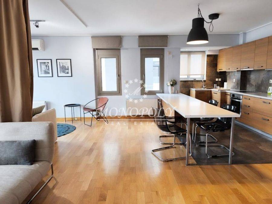 Glyfada - Golf, luxurious penthouse maisonette 107sqm., 3rd-4th floor, constructed in 2009, fully furnished. It has a living-room with fireplace, open plan kitchen, 1 master bedroom & 2 bathrooms, balconies with awnings and mountain view, independent own-gas heating, solar water system, boiler, double glazed windows, CCTV, security door, security alarm, storage room, inner stairs, elevator, shared swimming pool, back yard (garden) and 1 parking place in the garage. *Property location on the map can be relevant and not accurate. *ID or Passport and TAX number are required for visiting the property, from each person that will be present.