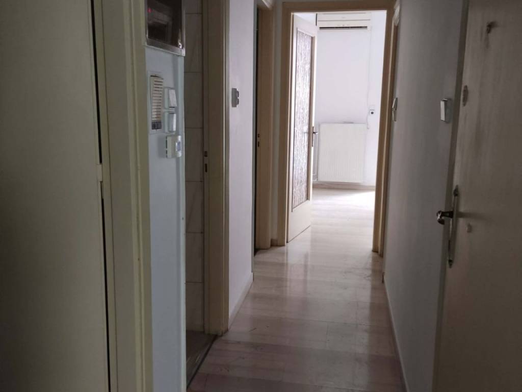 Ιδιώτης. Οροφοδιαμέρισμα διαμπερές 1ου ορόφου σε τριώροφο κτίριο, 2 μεγάλα υπνοδωμάτια ίδιων διαστάσεων με εντοιχισμένες ντουλάπες, ξεχωριστό σαλόνι και μεγάλη κουζίνα-τραπεζαρία με μικρή αποθήκη στην κουζίνα, μπάνιο και wc. Τα υπνοδωμάτια έχουν δάπεδο ξύλο (παρκέ) και οι υπόλοιποι χώροι λευκό μάρμαρο. Διαθέτει αυτόνομη θέρμανση με κεντρικό καυστήρα πετρελαίου, μπόιλερ για ζεστό νερό και 2 κλιματιστικά. Μεγάλα μπαλκόνια εμπρός και πίσω. Κουφώματα αλουμινίου με διπλά τζάμια σε κουζίνα-τραπεζαρία και υπνοδωμάτιο, μονά σε σαλόνι και το δεύτερο υπνοδωμάτιο. Τριφασικό ρεύμα με νυχτερινό τιμολόγιο. Επιβαρύνεται μόνο με τα έξοδα καθαριότητας των κοινόχρηστων χώρων, 15 με 20 ευρώ/μήνα. Υπό έκδοση νέου ενεργειακού πιστοποιητικού. Παρακαλώ όχι μεσίτες.