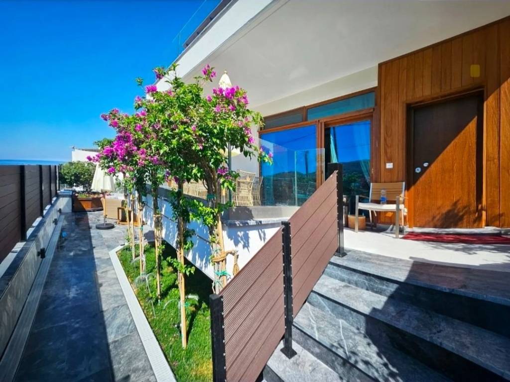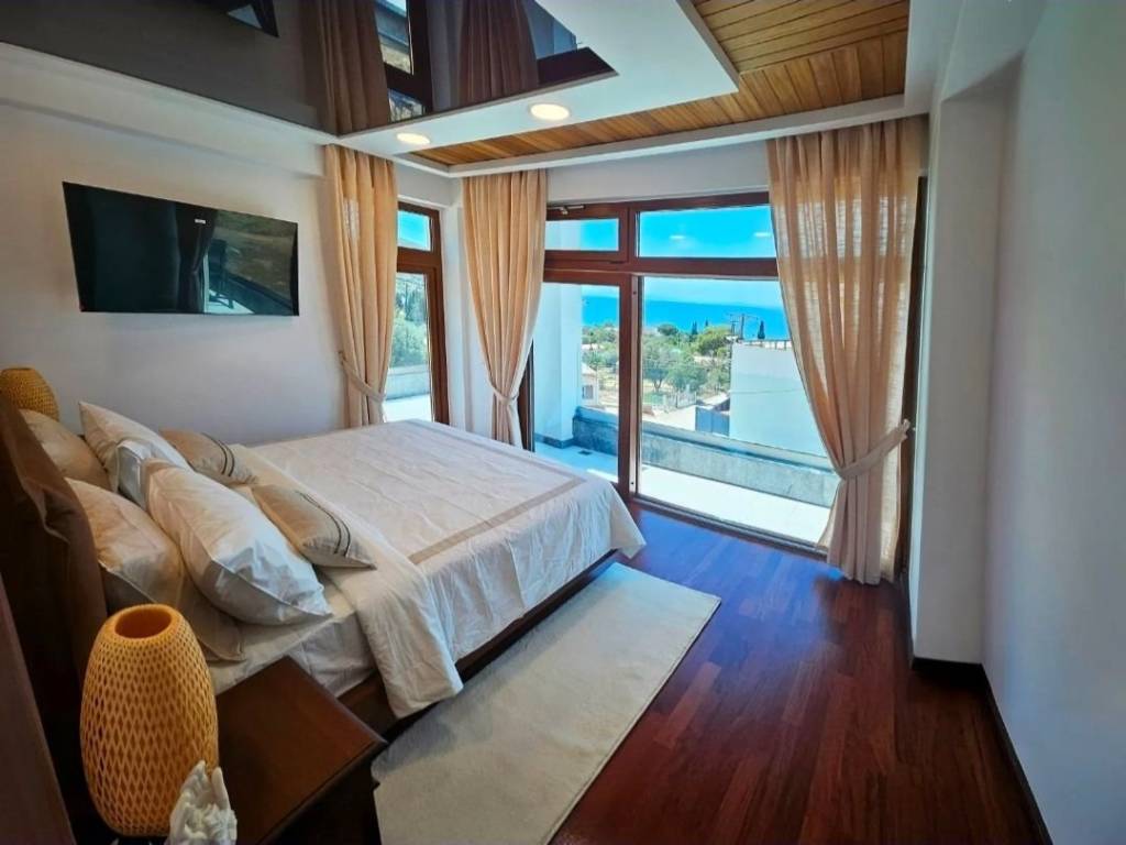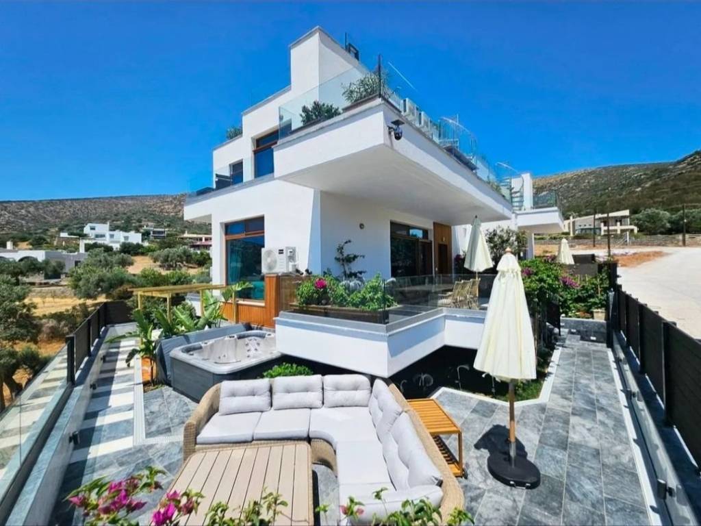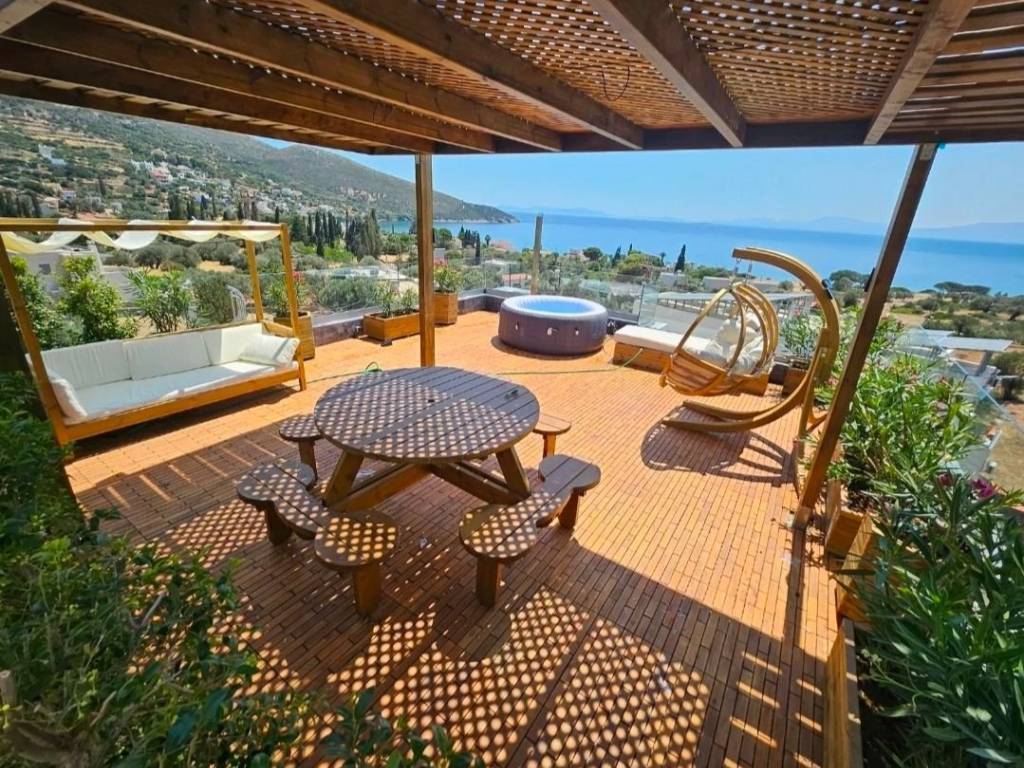 "VILLA FREGATE" - VILLA Β Just 200 m from the beach ️ Villa Class: BUSINESS COMFORT Property Size: 168 sq.m. Interior Living Space +46 sq.m. Rooftop Solarium +48 sq.m. Balconies This luxury modern villa offers stunning sea views. Floor to ceiling windows allowing the interiors to fully enjoy the priceless sea views of both the mountains and coastline. A magnificent rooftop solarium with a jacuzzi makes this villa a wonderful place to relax. Just a couple minutes' walk will bring you to Nimborio beach, Evia's best swimming spot. The site is located in the city plan.