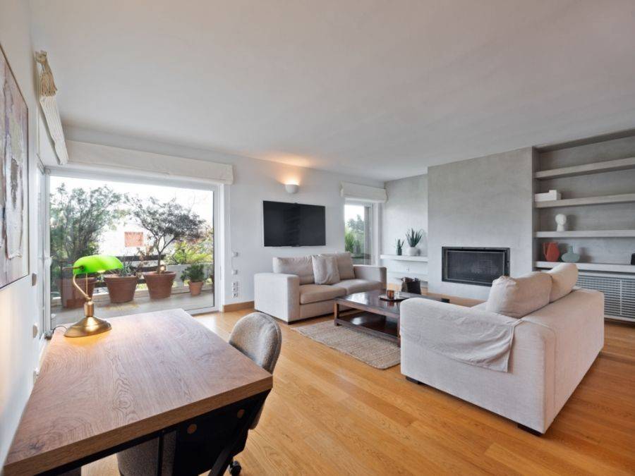 Kifissia, Kefalari, Apartment For Rent, 123 sq.m., Floor: 3rd, 1 Level(s), 2 Bedrooms 1 Kitchen(s), 1 Bathroom(s), 1 WC, Heating: Central - Natural Gas, Energy Certificate: C, 1 parking(s), Floor type: Wooden floors + Tiles, Type of doors: Aluminum, Features: Elevator, CCTV, Storage room, Fireplace, Night stream, Cable TV, Internet Line, Electric Appliances, Double Glazed Windows, Balconies, Furnished, Luxury, Airy, Roadside, Bright, On Corner, AirConditioning, Back yard (Garden), Painted, Renovated, Price: 2.250€. Yestayhomes, Tel: 6986749007